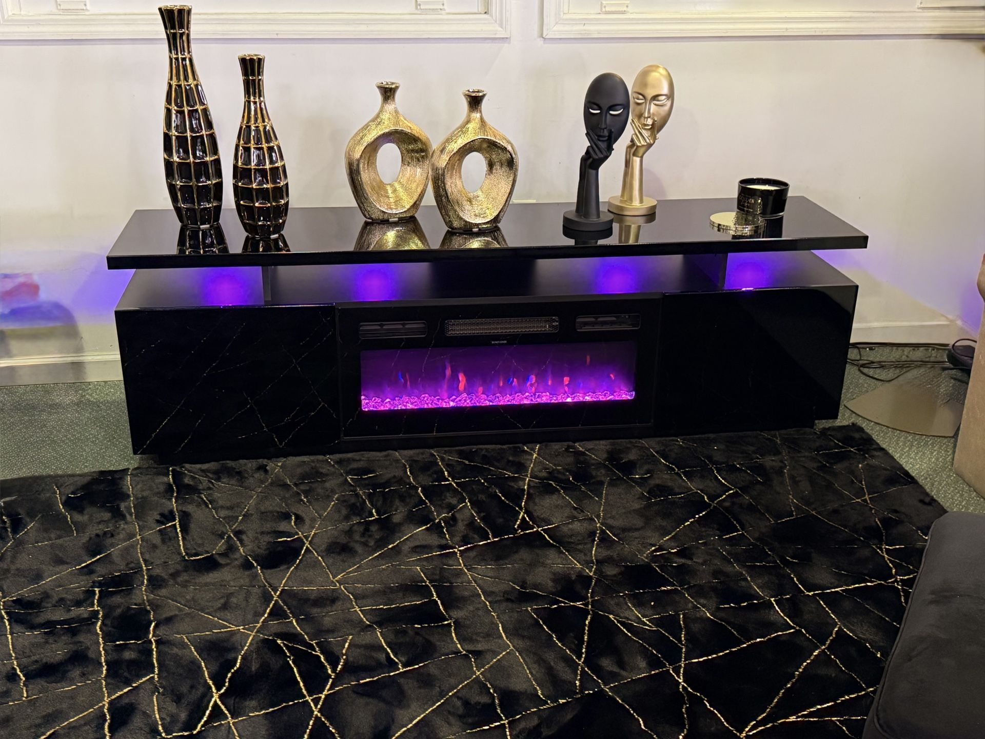 Black Glossy TV Console With Fire Place / Consola Chimenea
