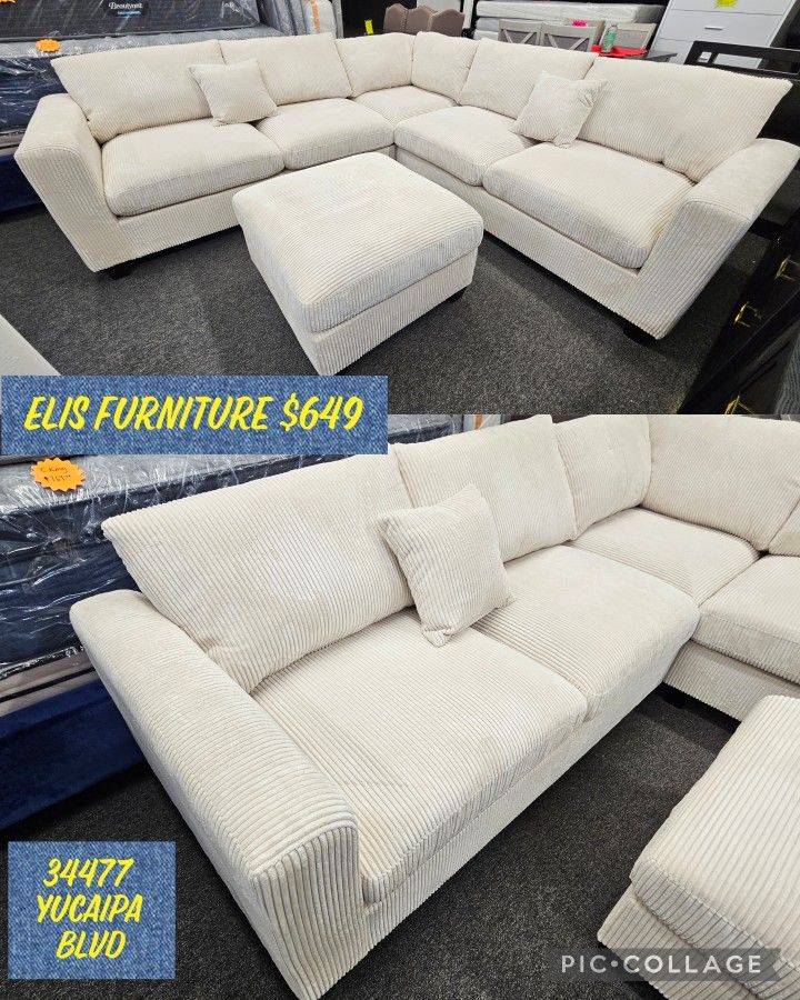 Super Deal 4 Pcs Sectional 99 x 99 Beige Corduroy Ottoman Included $649 + Tax FIANANCE AVAILABLE 3 MONTHS SAME AS CASH NO CREDIT CHECK LOW OR 0 DEPOSIT EVERYDAY 11 TO 7 PM