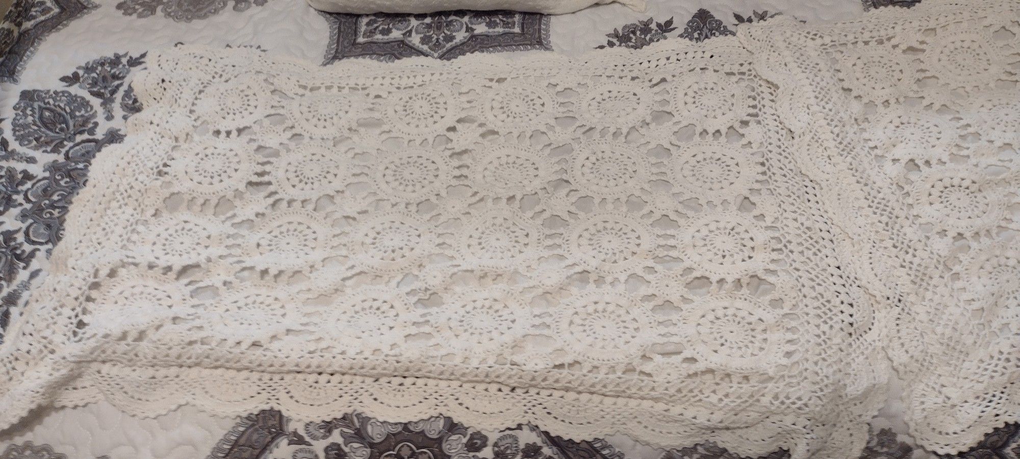 Adorable white macrame type cotton pillow cases...Washed and ready for a new home!