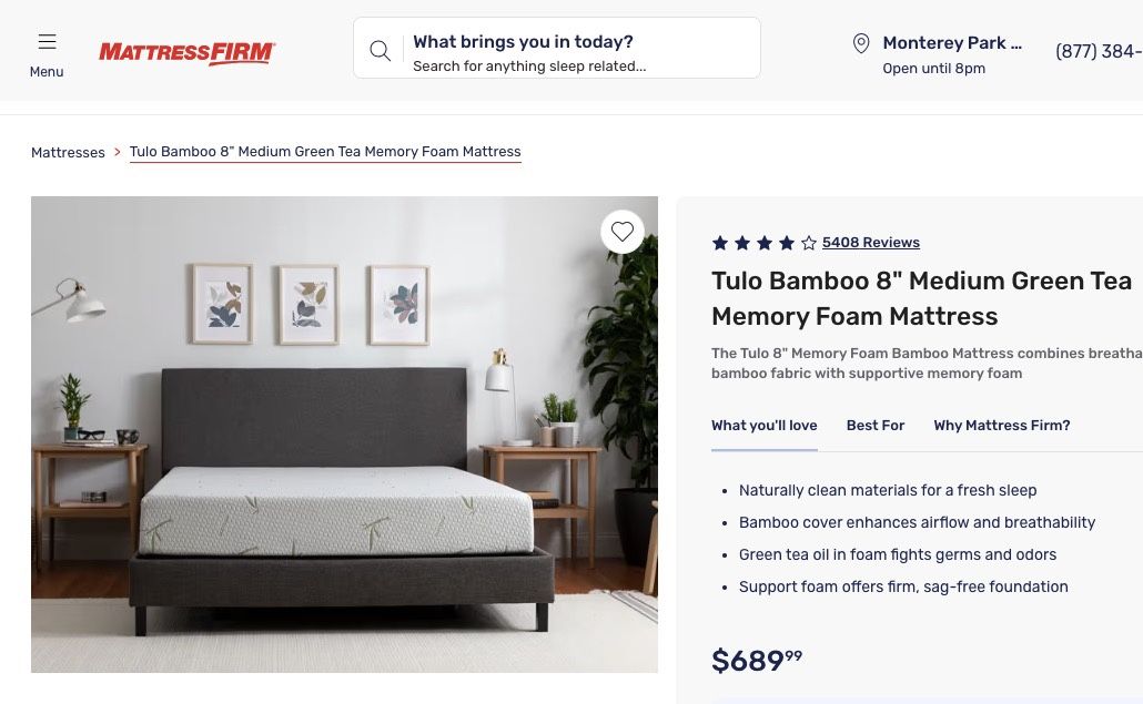 Queen Size: (60” W x 80” L) Naturally clean materials for a fresh sleep Bamboo cover enhances airflow and breathability Green tea oil in foam fights germs and odors Support foam offers firm, sag-free foundation GREAT REVIEWS! Pick up in 90004 neighborhood