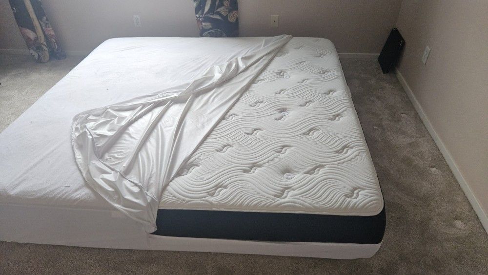 Big Fig Mattress, king size. Moderate firmness. Purchased in January 2025. Immediately went into a mattress protector. No stains. Excellent condition. No pets or smoking.