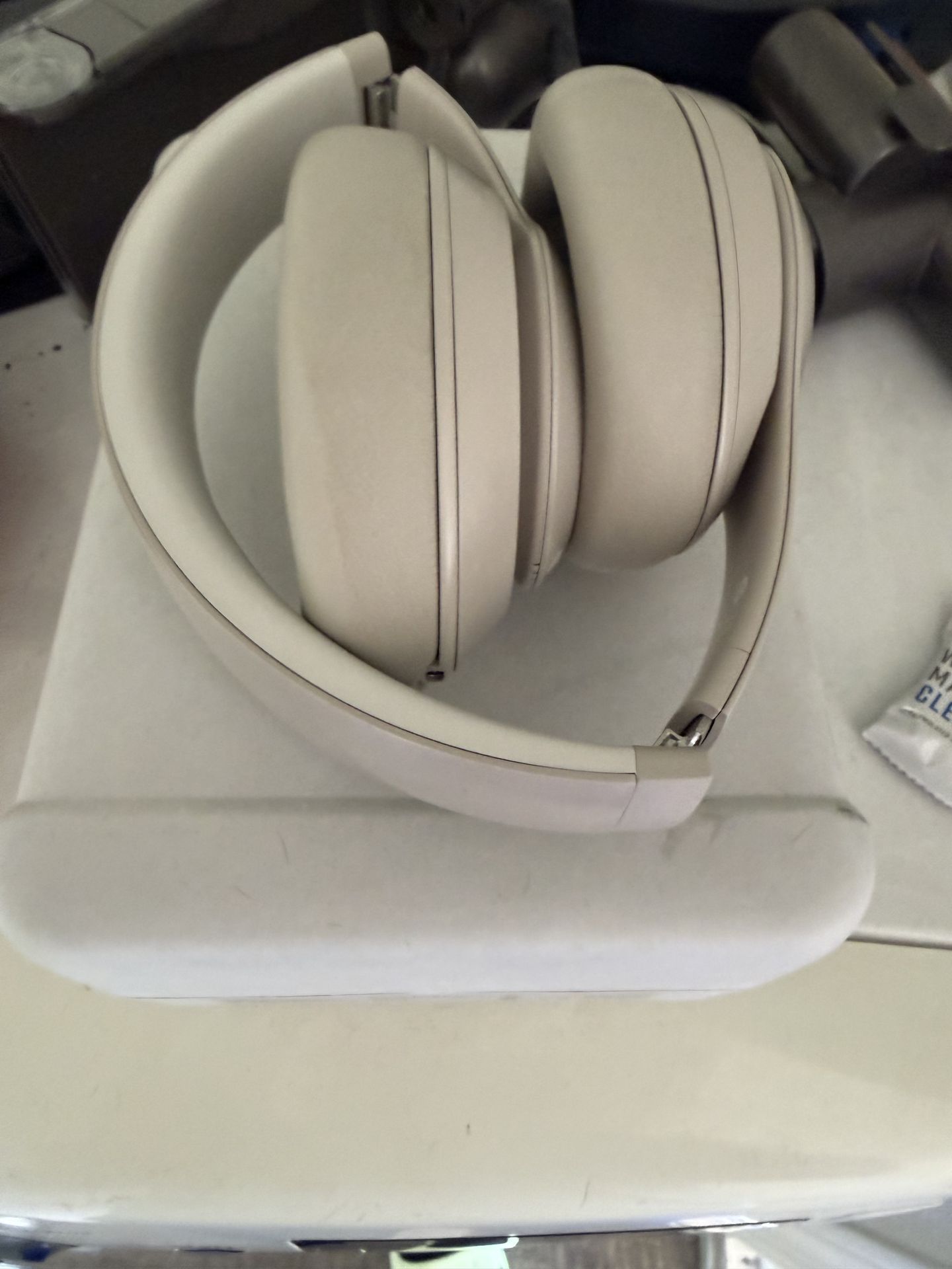Gently used Beats Studio Pro in Sandstone. Purchased from Costco and still has a year and a half left on the AppleCare +, can be verified in the pic.