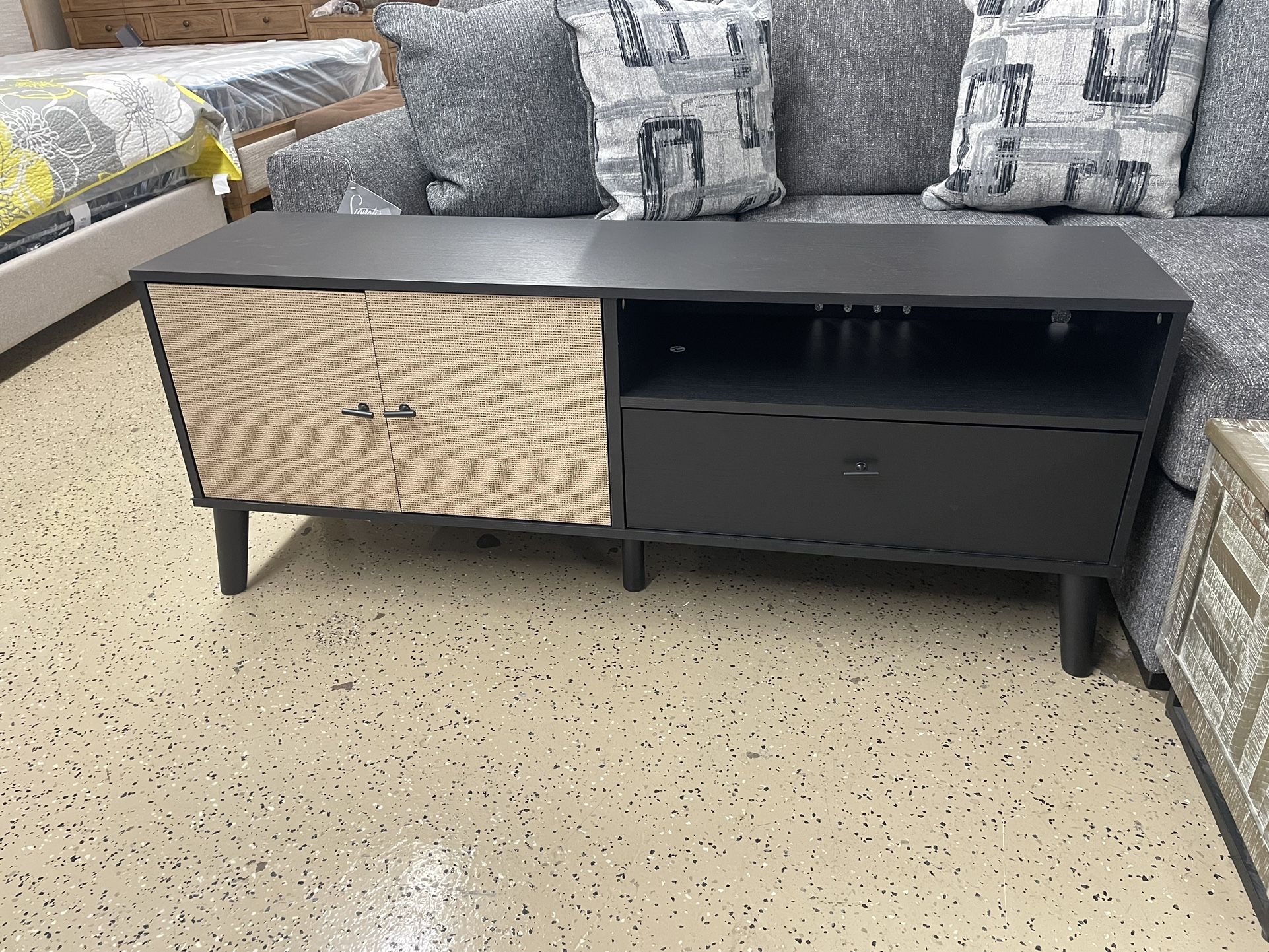 New Chic tv stand Made by Ashley furniture $199 or Reasonable offers Already put together, no need to assemble. Tv stand is 59inches wide, 15 inches deep, 24inch tall Financing available Delivery available