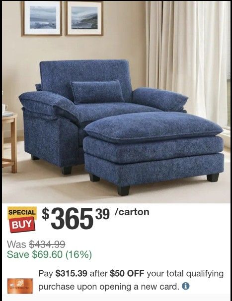 2-Piece Navy Chenille Fabric Accent Chair 3-Layer Cushion Armchair with Ottoman