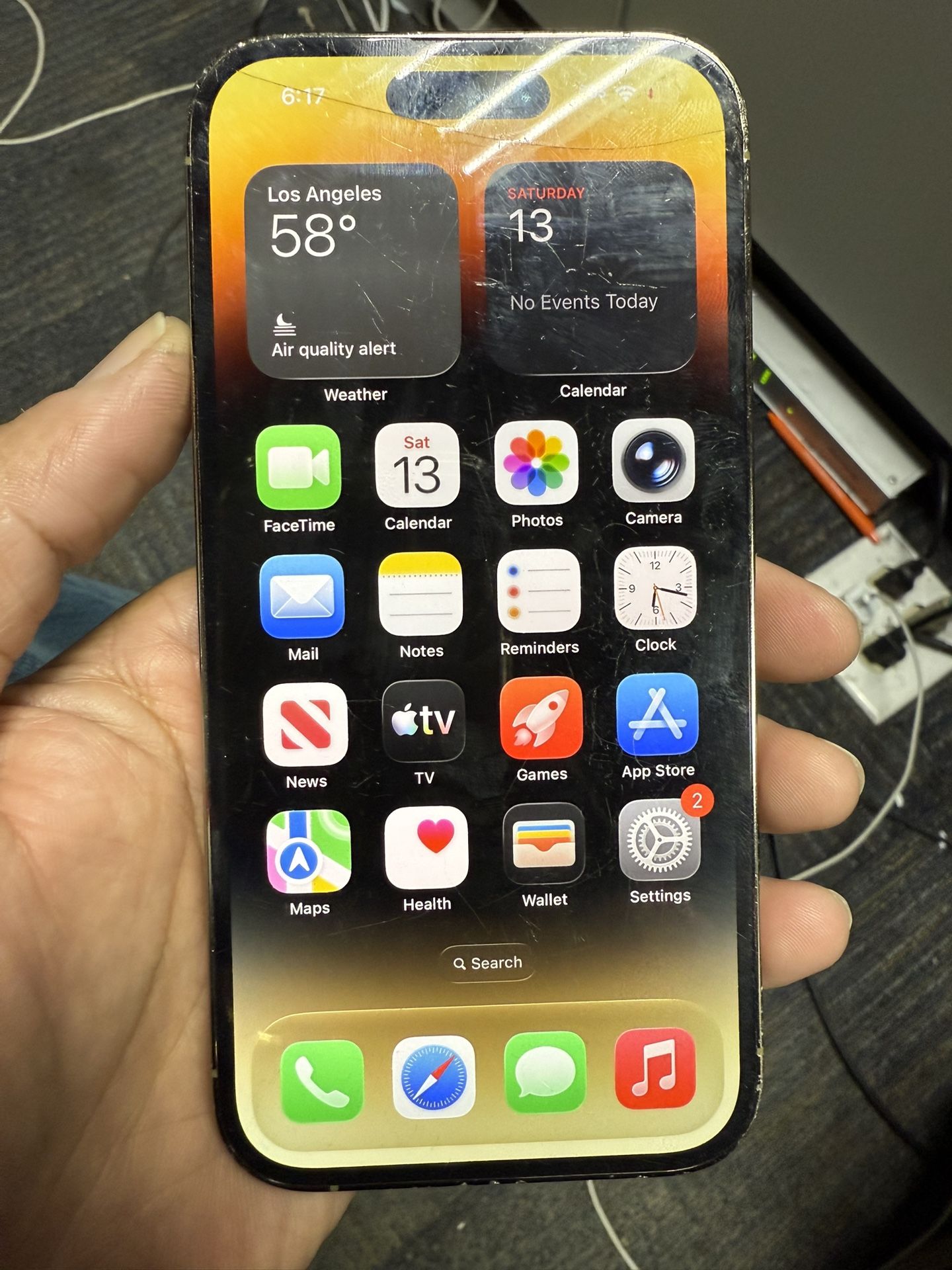 Up for sale iPhone 14 Pro 256gb AT&T Screen have scratches and small crack on side Back has small hair line crack Clean imei Battery health is 80% Quick sale