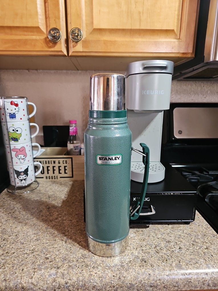 Green Stanley 1 L Classic Bottle LIKE NEW Keeps drinks hot/ cold up to 24 hrs Stainless steel , rust proof