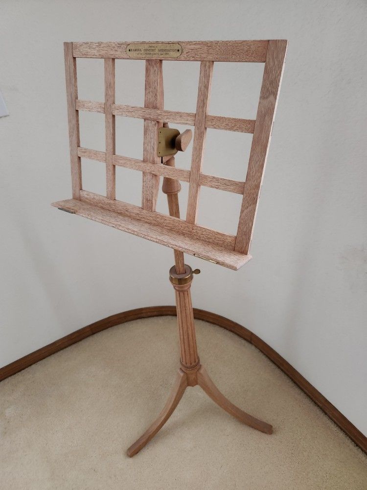 This wooden music stand was handcrafted by the Lemorian Fellowship in Ramona, California. Their music stands sell for over $450 online.