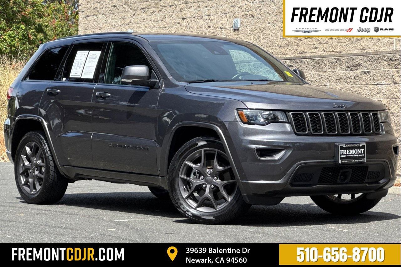 506 Watt Amplifier, 80th Anniversary Luxury Group, Active Noise Control System, Adaptive Cruise Control w/Stop, Advanced Brake Assist, Berber Floor Mats w/80th Anniversary Tag, Black Roof Molding, Body Color Claddings, Body Color Door Handles, Body Color Shark Fin Antenna, Cargo Compartment Cover, Dark Day Light Opening Moldings, Dark Headlamp Bezel Finish, Dark Lens Taillamps, Dual-Pane Panoramic Sunroof, Front Accent/Body Color Fascia, Full Speed FWD Collision Warn Plus, Granite Crystal Exterior Accents, Granite Crystal Exterior Badging, Granite Crystal Exterior Mirror Caps, Granite Crystal/Black Grille, Heated Second Row Seats, Jeep 80th Anniversary Badges, Jeep 80th Anniversary Edition, Lane Departure Warning Plus, Leather Trimmed Bucket Seats (JY), LT. Tungsten Interior Accent Stitching, Navigation System, Parallel & Perp Park Assist w/Stop, Piano Black/Anod. Gunmetal Interior Accents, Power Tilt/Telescope Steering Column, Premium Alpine Speaker System, Quick Order Package 2BK 80th, Rain Sensitive Windshield Wipers, Rear Accent/Body Color Fascia, Ventilated Front Seats, Wheels: 20"" x 8.0"" Granite Crystal Aluminum.Granite Crystal Metallic Clearcoat 2021 Jeep Grand Cherokee 80th Anniversary Edition RWD 8-Speed Automatic 3.6L V6 24V VVT19/26 City/Highway MPG*Vehicle may have dealer added equipment not reflected in price. All vehicle Offer Prices are subject to final approval by the buyer and Dealer. Vehicles are subject to prior sale by Dealer if sale to buyer is not consummated. The List Price quoted is intended to provide a general idea of the vehicle's price and may vary or be modified by the dealer to reflect optional features, after-market additions, customizations or similar enhancements to a vehicle that are not standard market adjustments used in the MSRP. As a result, the price listed may be adjusted by the dealer to reflect such enhancements. Please consult directly with the dealership for more information. All vehicles at Fremont CDJR have ALLY Appearance Protection $1295, Clear Shield $395, SWAT Recovery System $995, Windshield Replacement $895, Lifetime Battery $695. Prices on the website do not include dealer-added equipment.