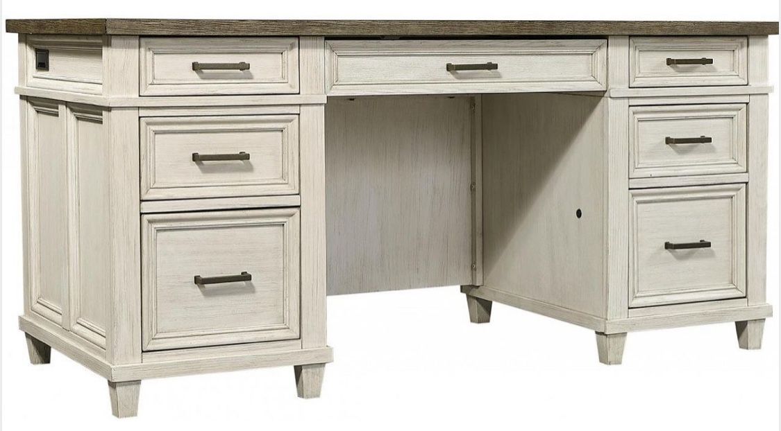 Macys Dawnwood / Aspenhome Caraway 66" Executive Desk in Aged Ivory I248-303 Farmhouse Chic