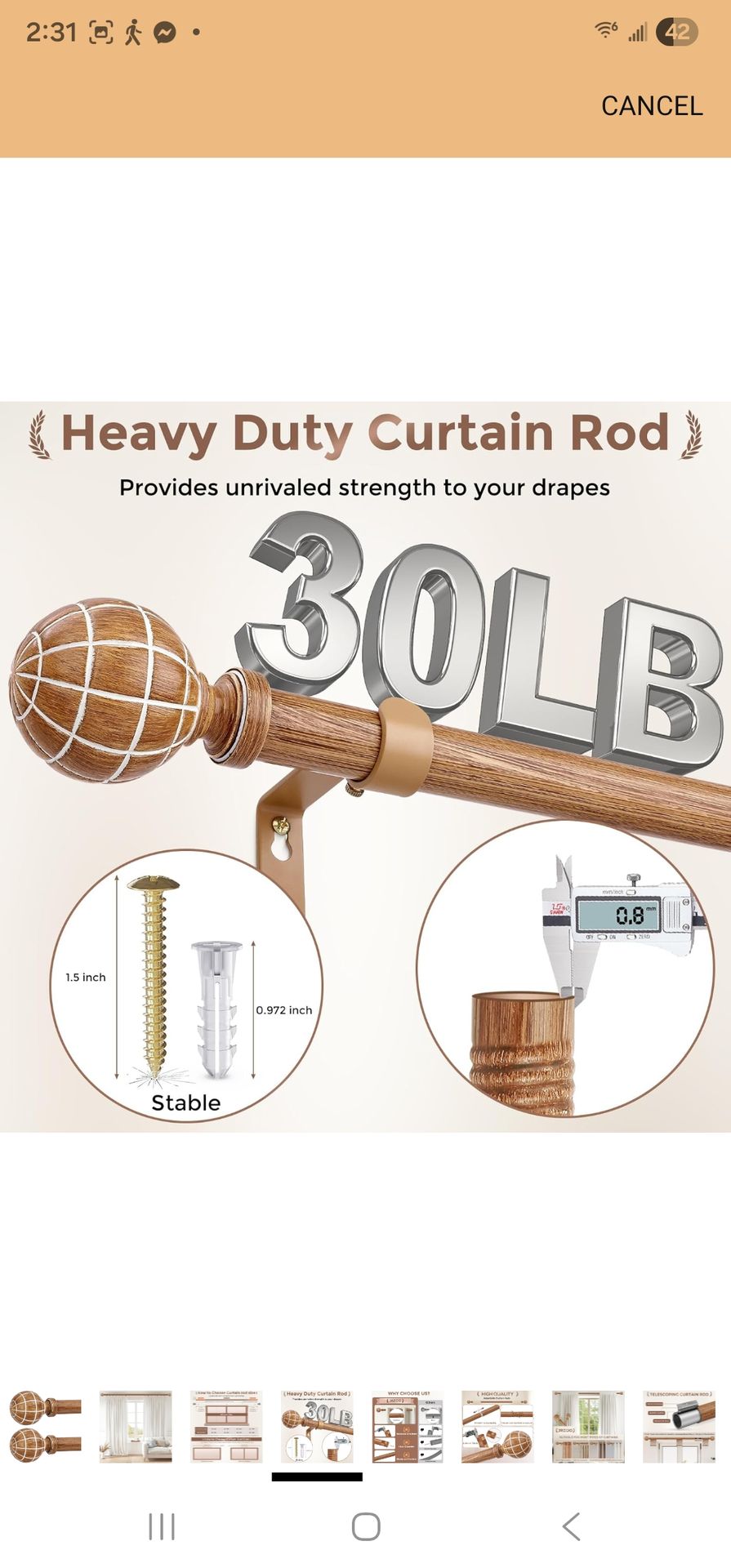 36-88" curtain rod