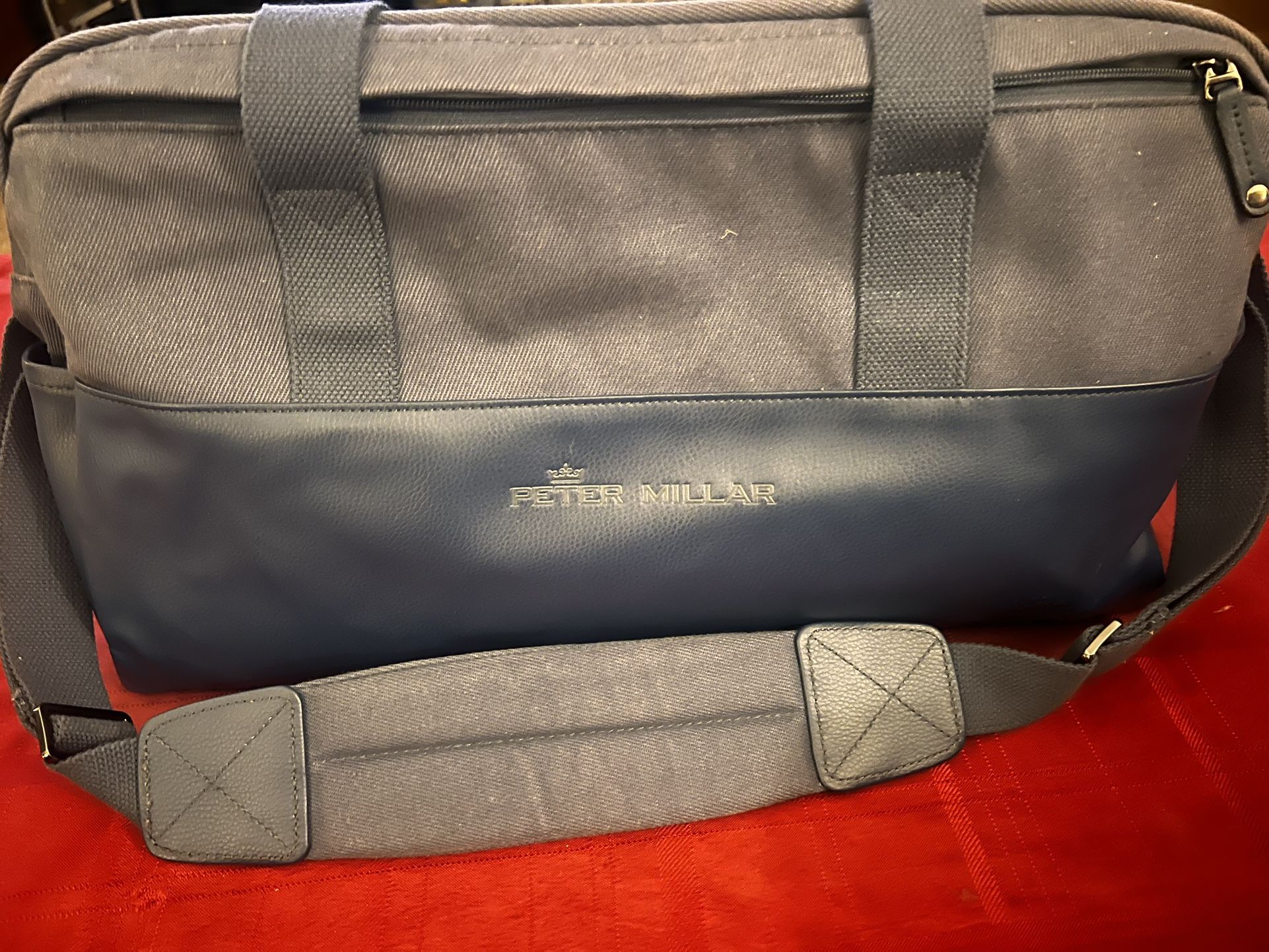 Navy bag great for traveling. Has multiple pockets and has only been used twice. Has been in storage since.