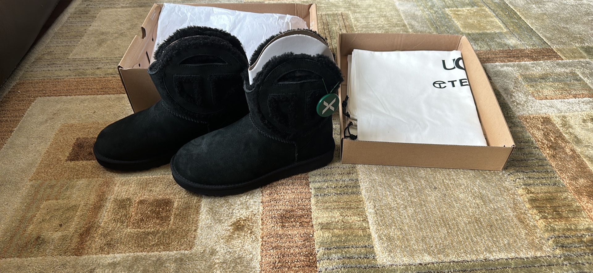 New In Box Black Ugg Telfar Logo Size 6 Boots