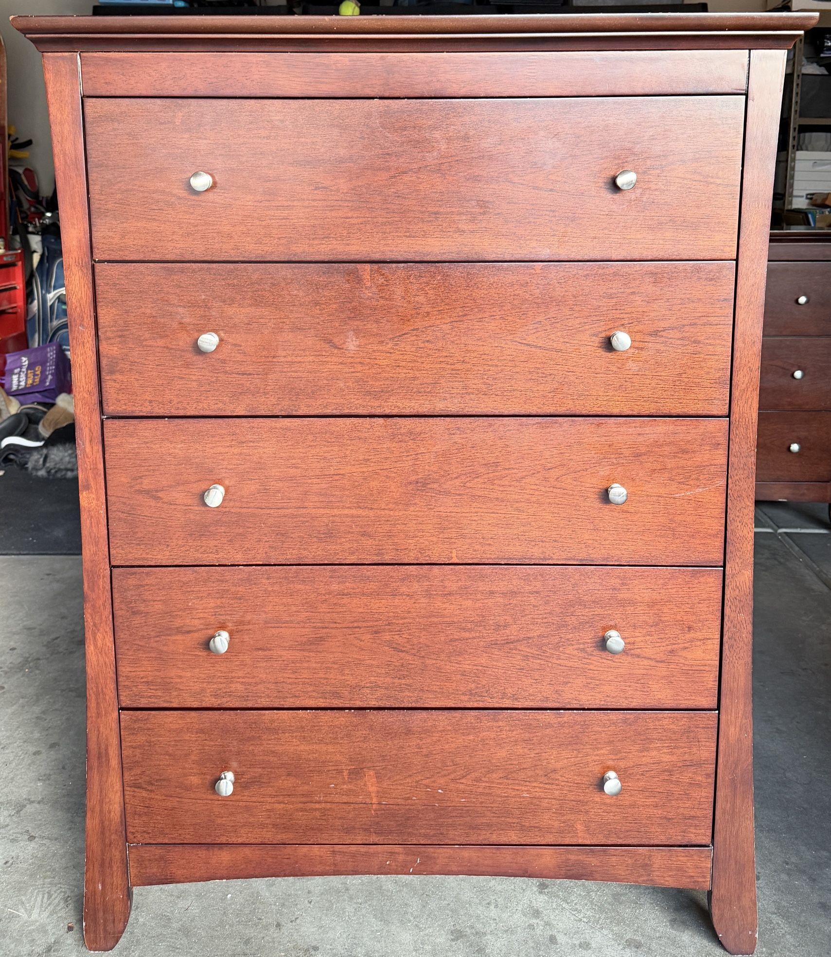 ACCEPTING BEST OFFER- Used king bedroom set in good condition with normal wear. Includes king headboard, box springs, chest dresser, 6-drawer , and nightstand. Pickup only.