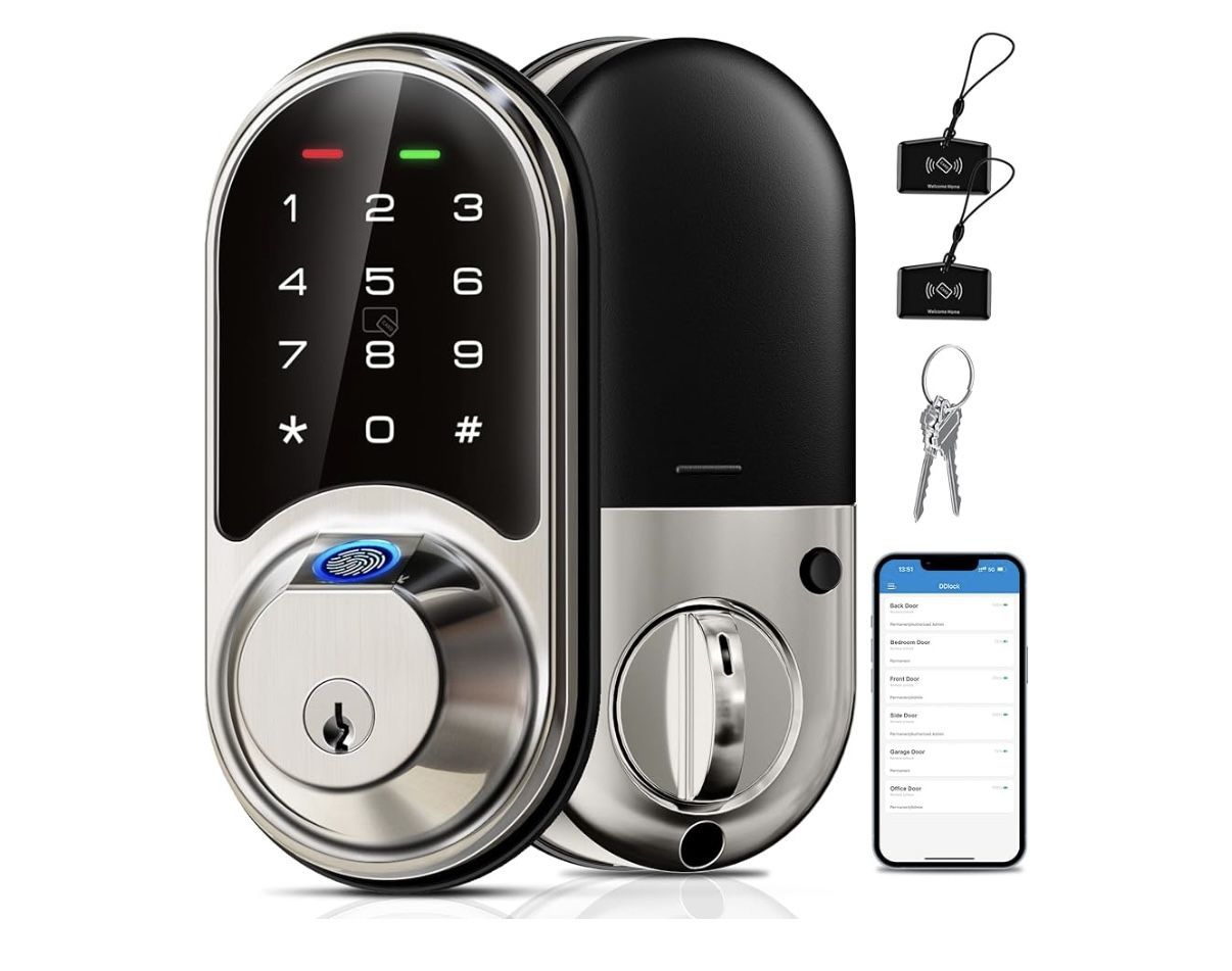 Veise RZ07 Smart Lock, Fingerprint Door Lock, 7-in-1 Keyless Entry with App Control, Electronic Touchscreen Keypad Deadbolt, Biometric Smart Locks for