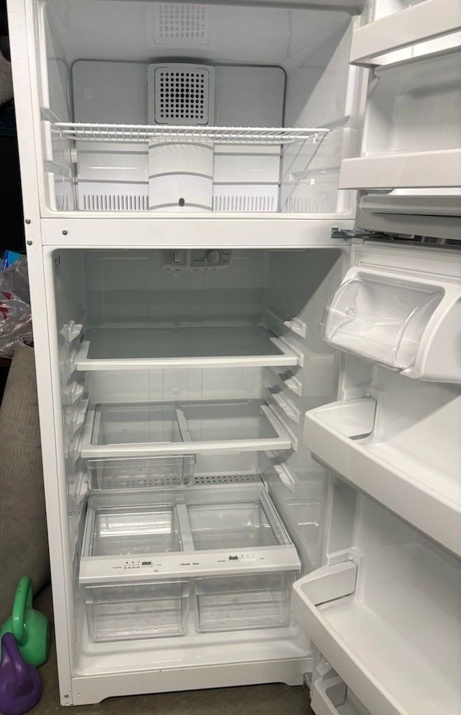 GE 18 cu ft top freezer refrigerator (Model GTS18GTHWW). Works perfectly — fridge and freezer both get cold fast. Clean inside and out. 66.7” H x 29.5” W x 32” D Pickup in Fountain Valley. Bring help to load. Message if interested
