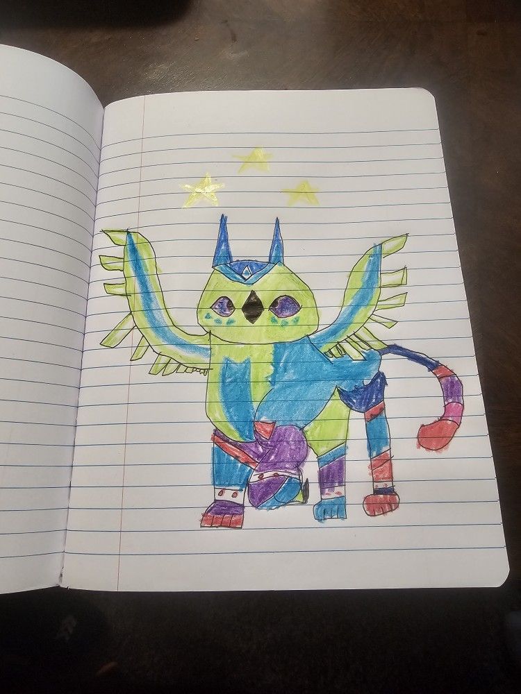 Hand drawn picture by my son. Will be very collectible as his artistry career takes off.