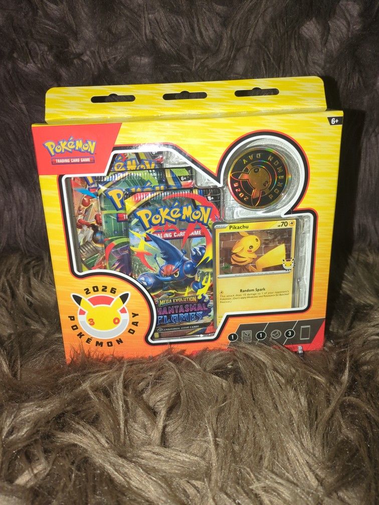Pokémon 30th anniversary collection box It includes one foil promo card, one pokémon coin, and three pokémon TCG booster packs.