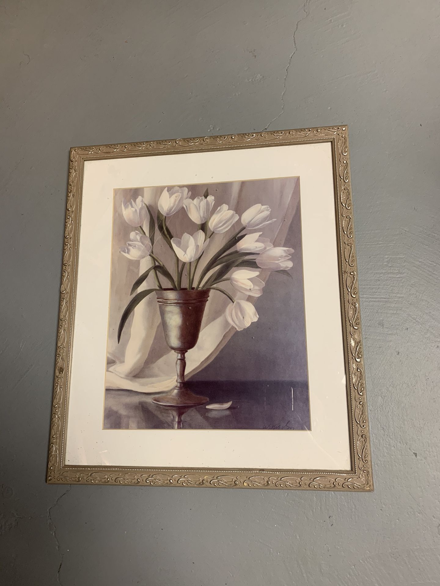 Flowers in vase picture Measurements: 17 1/2” wide x 21” tall Pickup only Cash only Thank you
