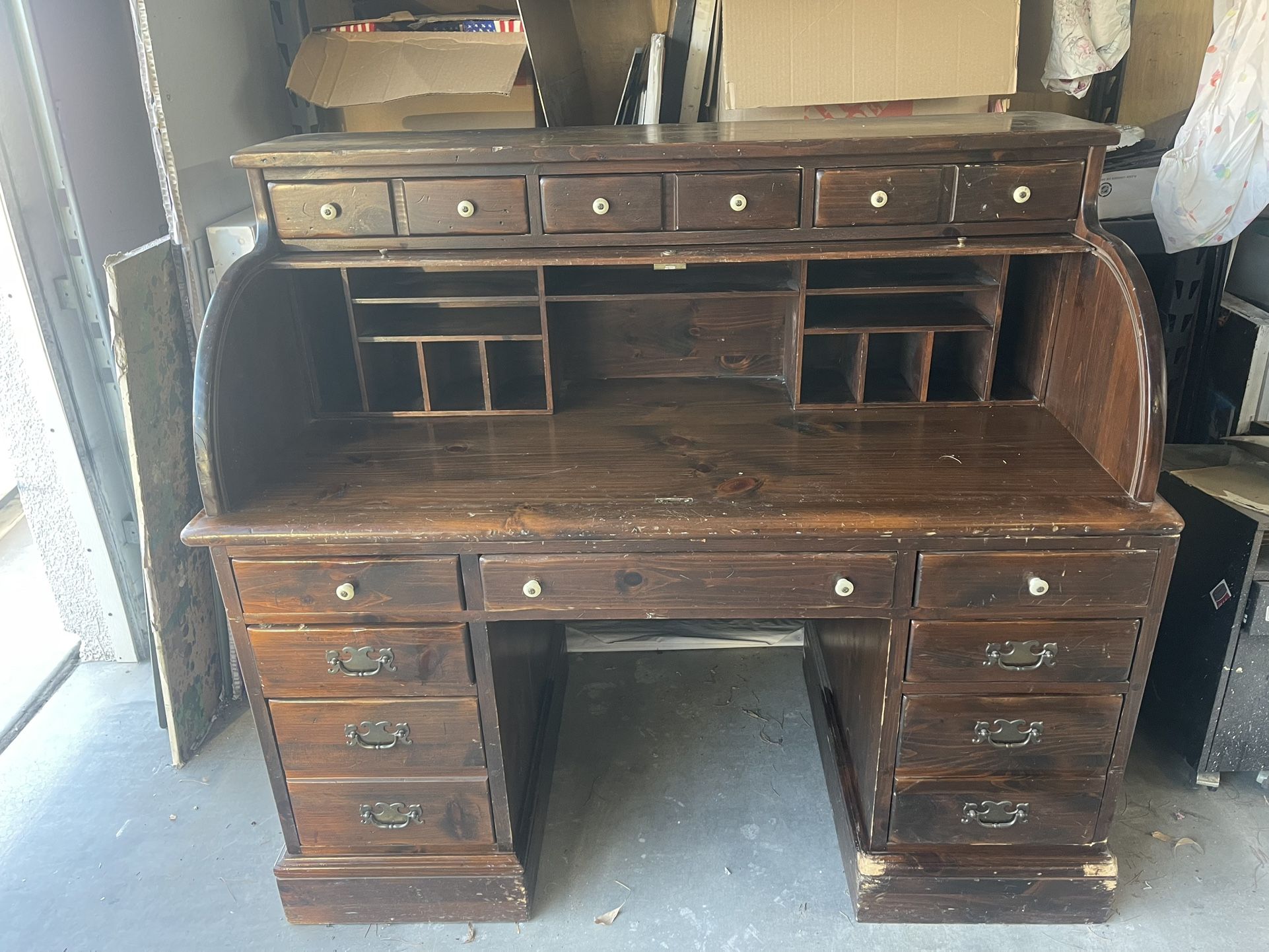 Vintage Wood Roll Top Desk
