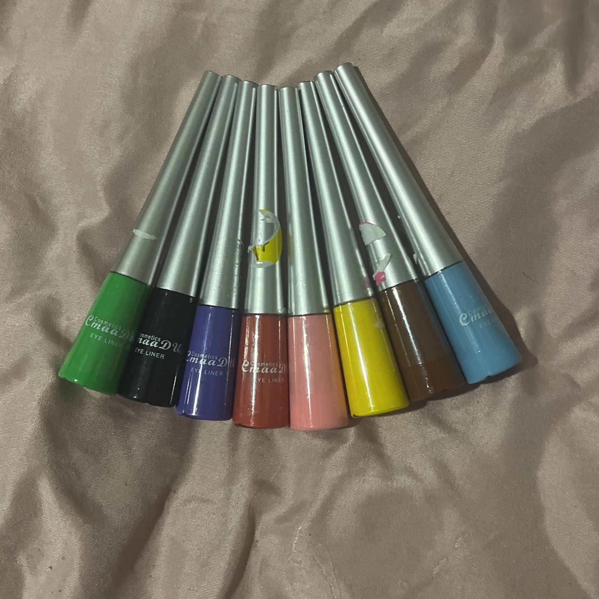 Pink, black,yellow,light blue, purple, brown, green,reddish orange eyeliners all for $2