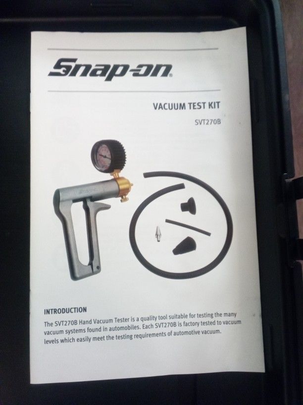 Snap-on SVT270B vacuum pump test kit features diagnostics aid for checking operation of vacuum - activated actuator measures vacuum up to 30 Hg with easy-to-read gauge release valve controls It's never been used asking $150.00 They are selling $169.00 - $249.00
