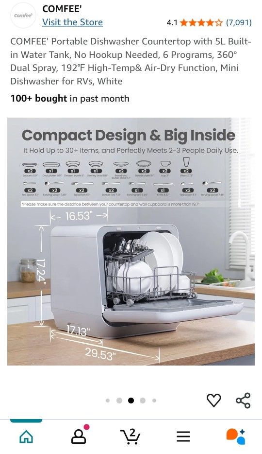 COMFEE' Countertop Dishwasher, Portable Dishwasher with 5L Built-in Water Tank, No Hookup Needed, 6 Programs, 360° Dual Spray, 192℉ Steam& Air-Dry Function, Mini Dishwasher for Apartments& RVs, White Turns on, not sure how it works, though Asking $85 or best offer Located in East Hemet