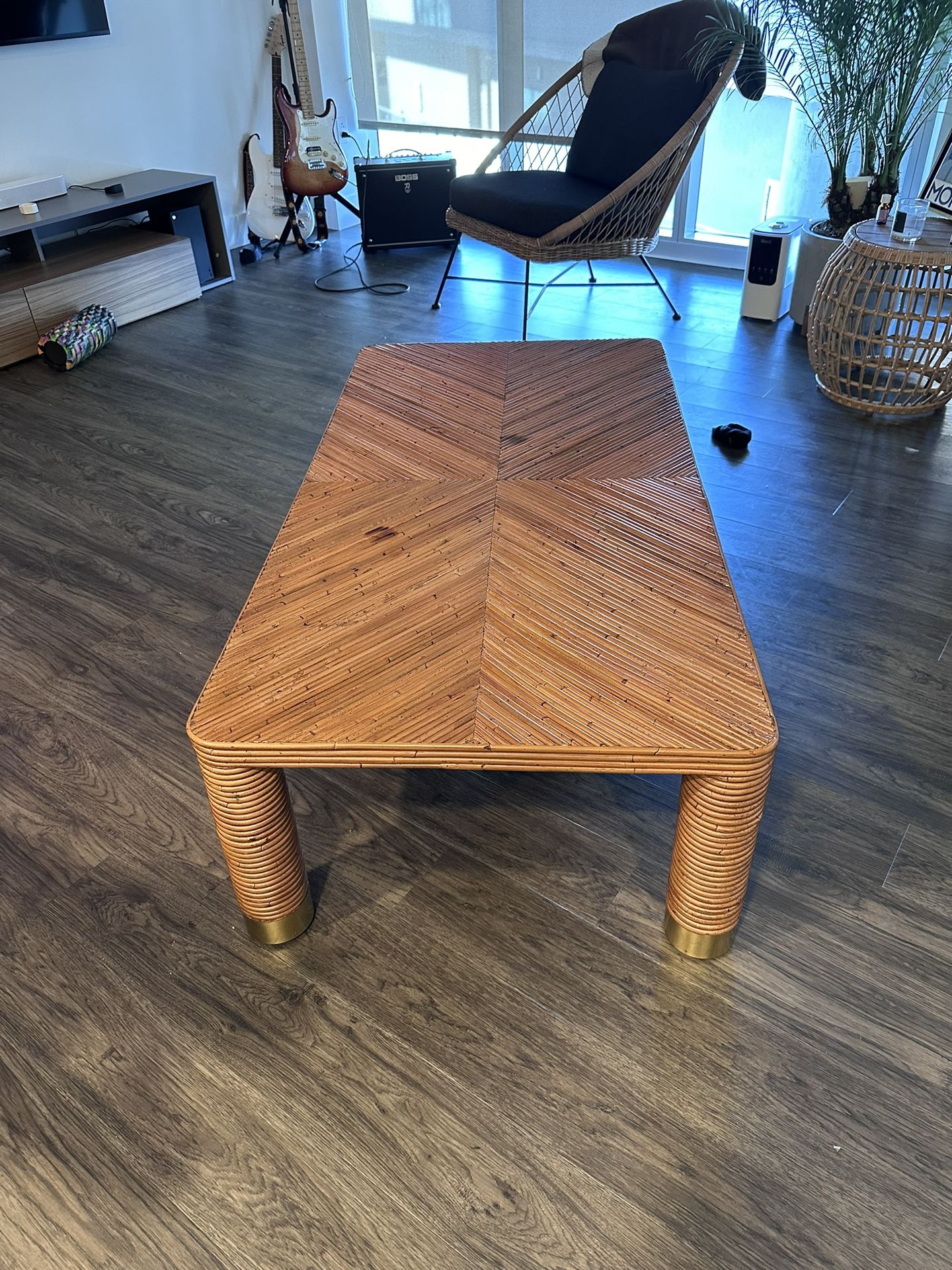 This is an extremely unique coffee table. Bought a year ago from Crate & Barrel for $1000 There is 2 burn marks on the table but it’s hardly recognizable & can be repaired with some wood stain of the same color This makes a great accent coffee table in any household! Offers are welcome!