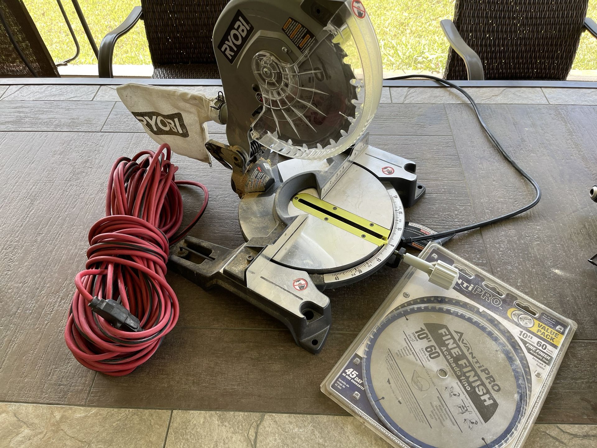Ryobi 10” Miter Saw ~ 3 Blades ( 2 New ) ~ 100 Ft Electrical Cord < Nice!