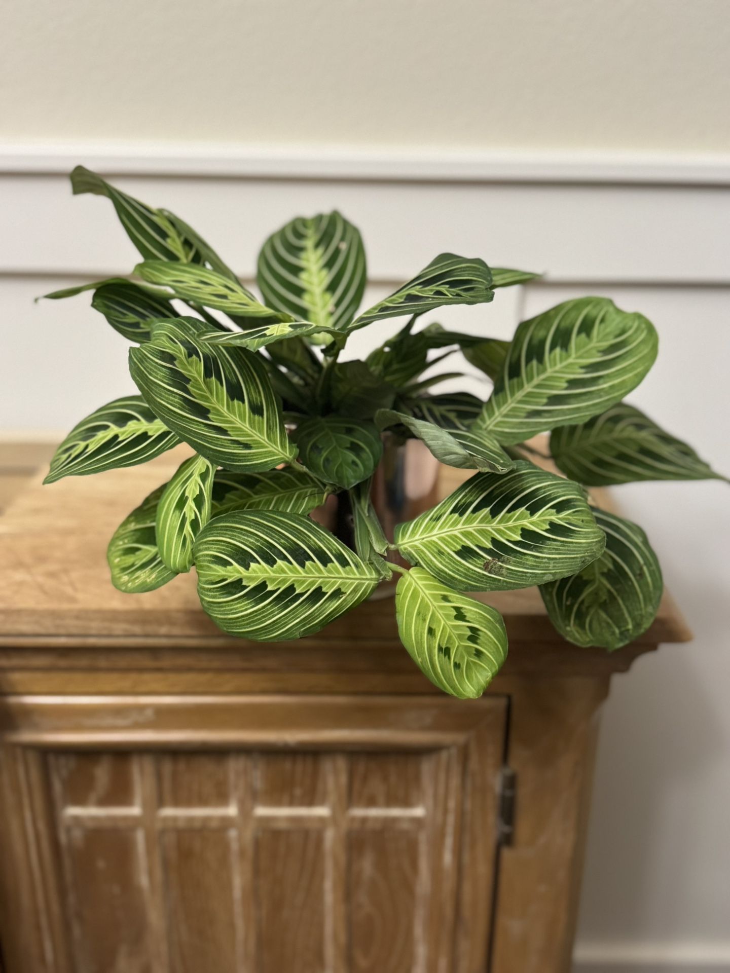 She’s approx 10” high and 9” wide. She’ll come in a nursery pot. If you’d like a ceramic pot, please let me know as I have several ranging from $4-10. Care instructions below. Pickup in North Bethany (97229) or Mall 205 area (mon-fri). Please check out my other plant and plant-related items I have listed 😊 Venmo preferred, cash and Zelle accepted. No trades. FCFS. ***Maranta (Prayer Plant) care involves providing bright, indirect light, keeping soil consistently moist but not soggy, and ensuring high humidity (50%+) via humidifiers or pebble trays, as they are tropical plants sensitive to dry air, cold drafts, and direct sun. Use well-draining, peat-based soil and water with filtered/distilled water when the topsoil feels dry, fertilizing lightly in the growing season.