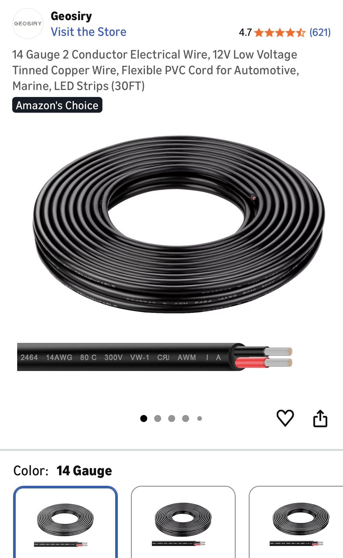14 Gauge 2 Conductor Electrical Wire, 12V Low Voltage Tinned Copper Wire, Flexible PVC Cord for Automotive, Marine, LED Strips (30FT) $15 a pack each pack is 30ft . Buy ten or more and I’ll give you a deal .
