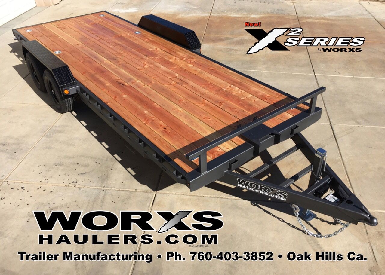 Check out the Worxs difference on our website. Worxshaulers. Com See the latest on our Facebook Page or follow us on Instagram@worxshaulers When you want something better than a flimsy Angle Iron or heavy C-Channel trailer. With exclusive features not found from other manufacturers. Key features of our trailers. * Steel Box Tube Frame Construction, including All Cross Members. Stronger than angle iron, more rigid and lighter than Channel frames. * Frames built on a precision jig, for maximum alignment. You get a trailer that tows straight with less drag and even tire wear. * Heavy Duty Fenders that bolt on. No cracking or sagging. * Flush Mount LED Lighting. Enclosed, not vulnerable to breakage. * Automotive grade wiring joined with 3M weather proof connectors, eliminating failure due to corrosion and wire breakage. * 2 Part Poly-Urethane Industrial coating for maximum durability. * 83" wide deck car / equipment trailers. * 98" wide deck (102") trailers with Drive Over Fenders. * Utility trailers in single and tandem axle. Small Family Owned SAE registered trailer manufacturer based in Oak Hills, Ca. Contact us for pricing. Worxs Haulers Oak Hills, Ca.