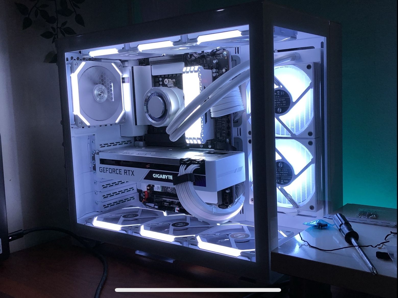 This is my personal gaming rig. Built it a few months ago and has been tested. Lighting is set to white in pictures but every light is full RGB. I also have and will include the box and extra components for each part used in this build. - Lian Li O11 Dynamic Mini Snow Edition ATX Mid Tower Case - AMD Ryzen 5 5600X - Gigabyte RTX 3070 Vision GPU - Corsair Vengeance RGB Pro 32 GB (4 x 8 GB) DDR4-3600 CL18 Memory - Gigabyte B550 VISION D-P ATX AM4 Motherboard - Lian Li GALAHAD AIO 240 RGB 69.17 CFM Liquid CPU Cooler - Sabrent Rocket 4.0 2 TB M.2-2280 PCIe 4.0 X4 NVME Solid State Drive - Cooler Master V850 SFX GOLD 850 W 80+ Gold Certified Fully Modular SFX Power Supply - Lian Li UNI SL120 58.54 CFM 120 mm Fans (7)