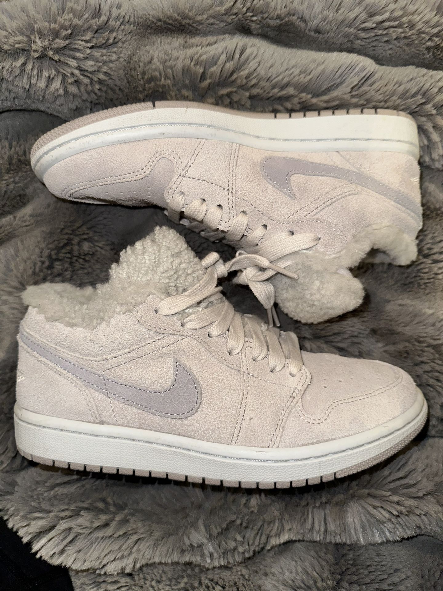 Like new Barely used , Womens Size 6 Nike- Air Jordan light Grey Sherpa sneakers, authentic , located in Encino.