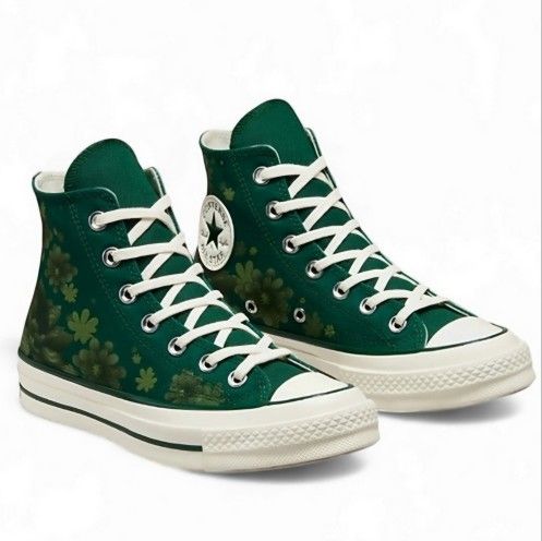 CONVERSE Chuck 70 Highmidnight Rare Clover Egret Plant High tops Mens 11.5 Brand New without box Designed to stand out anywhere, the Desert Rave Chuck 70 combines premium materials with faded, desert-inspired florals. Hits of tonal color on the patch, pinstripes, and plate pop against the classic cream midsole color. With OrthoLite cushioning for all-day comfort and support. Made from approximately 50% recycled cotton and 50% virgin cotton for a premium look and feel Premium cushioning provides all-day comfort and support Pale floral prints are inspired by nature Shiny, longer rubber sidewall and winged tongue stitching (Shoes7)