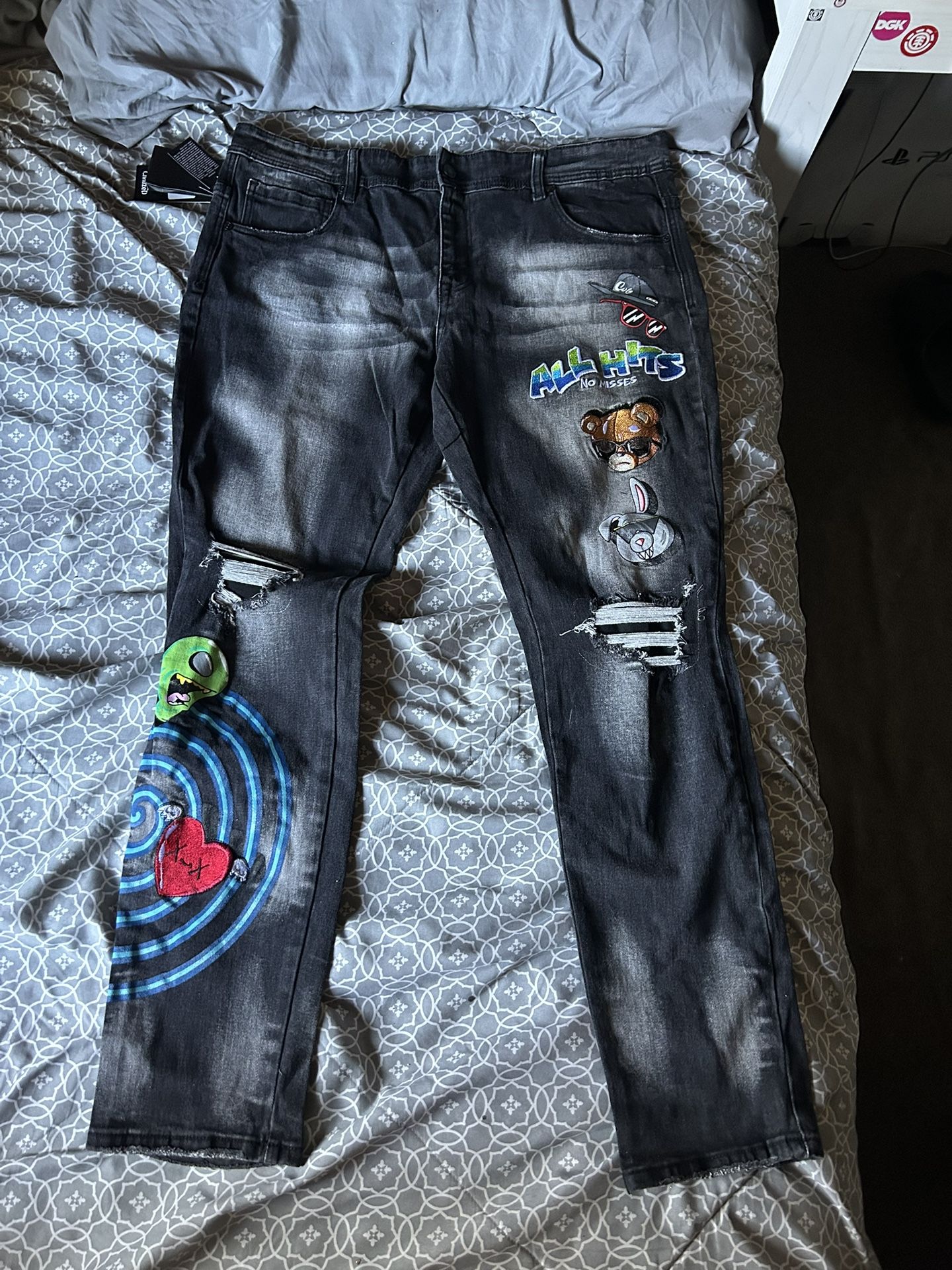 brand new with tags still on never worn need out my closet. Size 40 waist skinny jeans