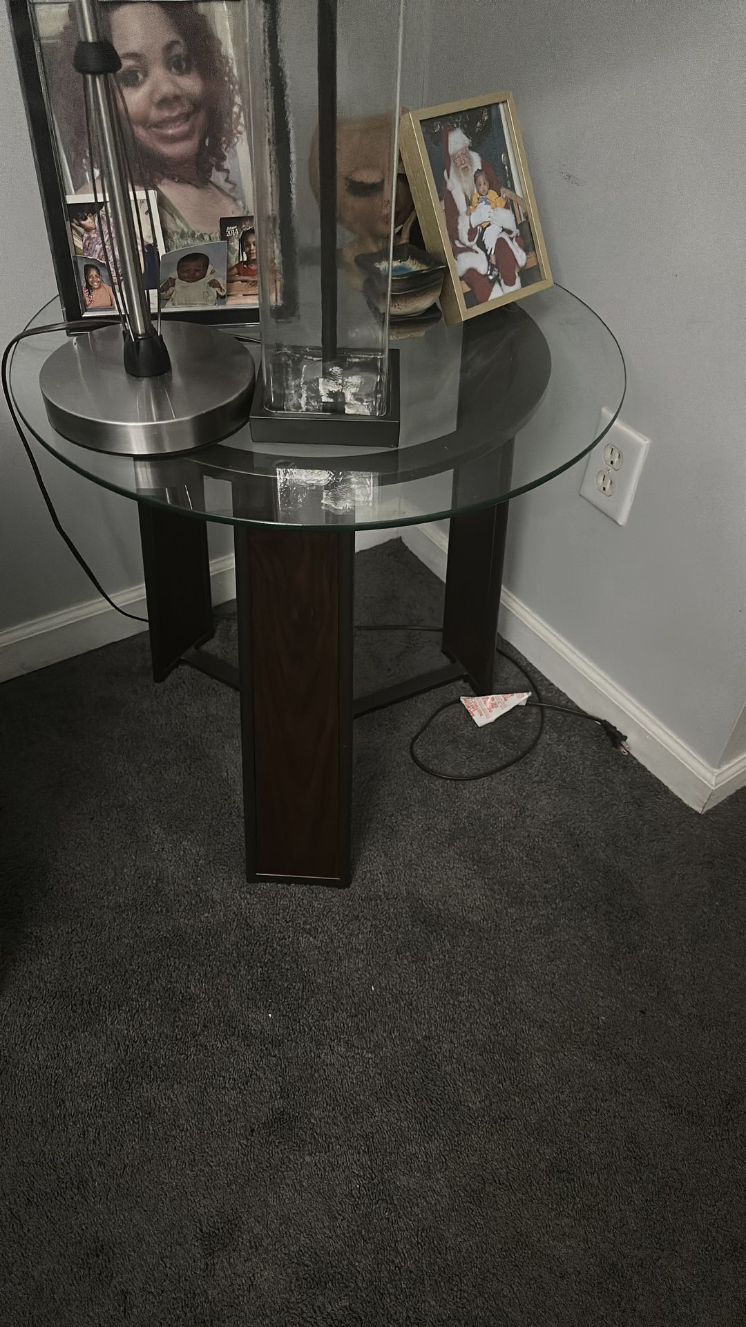 2 Glass End Tables brown Legs-Nice.. I’m moving need to sell asap.. only 1 is showing but I have 2