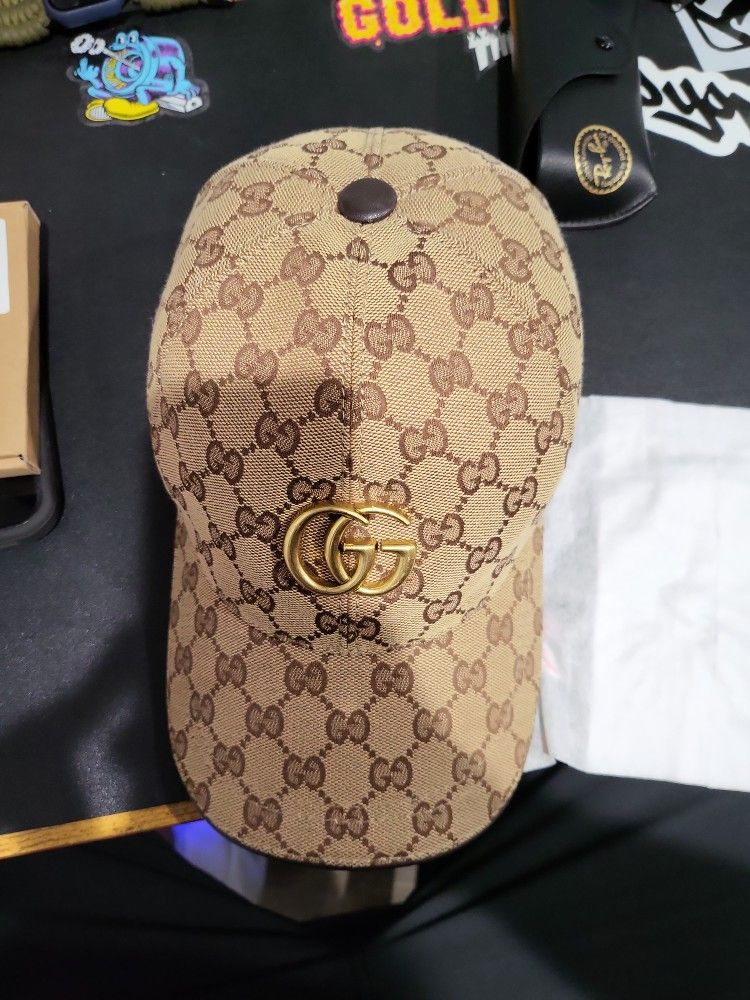 The "Original GG baseball hat" as seen in the image typically retails for $550. Other Gucci caps, such as bucket hats and those with different designs or collaborations, can range in price from around $350 to over $1,000, depending on the style, materials, and any special features.