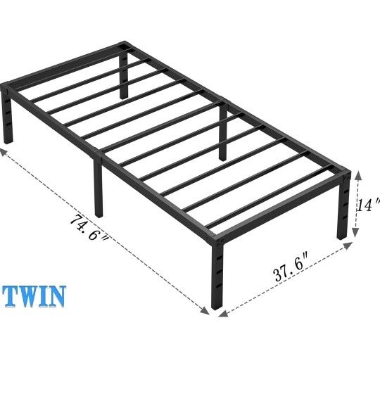 Metal Bed Frame,Twin Size Bed Frame with Storage Space,Heavy Duty Sturdy Mattress Foundation,Easy Assembly,No Box Spring Needed, Black,14 Inch,Twin
