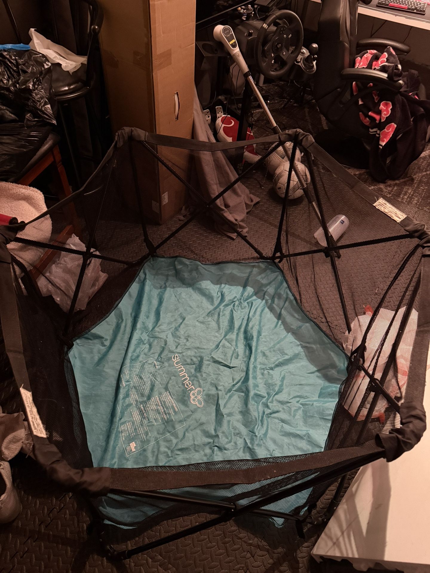 Well loved. Used by both of my babies. It could use a wipe down. It is perfectly in tact and is foldable—easy to store!
