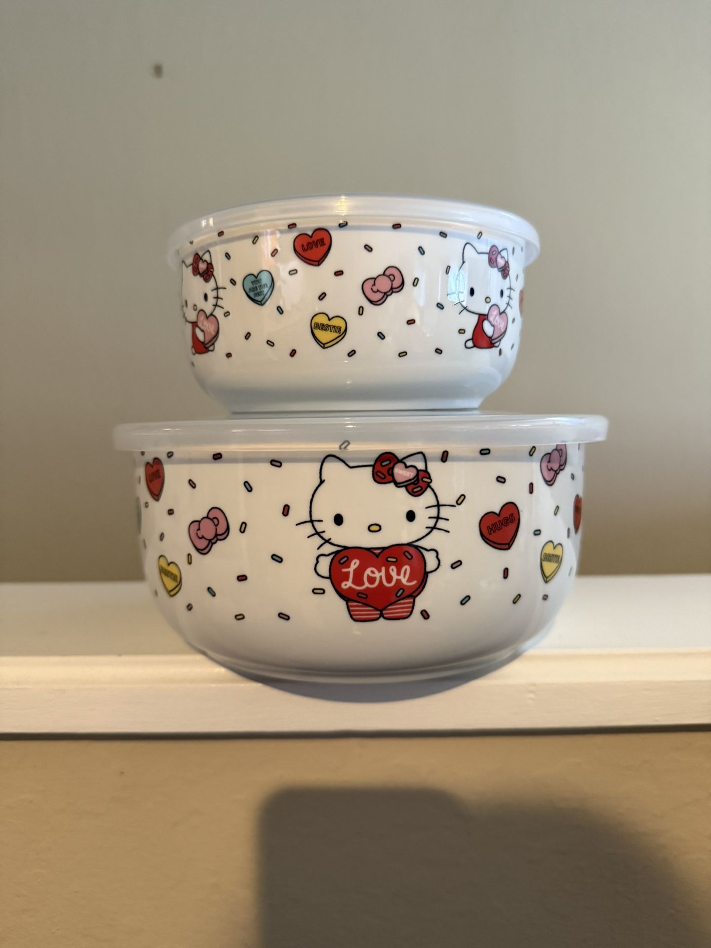 Brand New Hello Kitty Valentine’s Food Storage Stacking Bowls with Lids Set