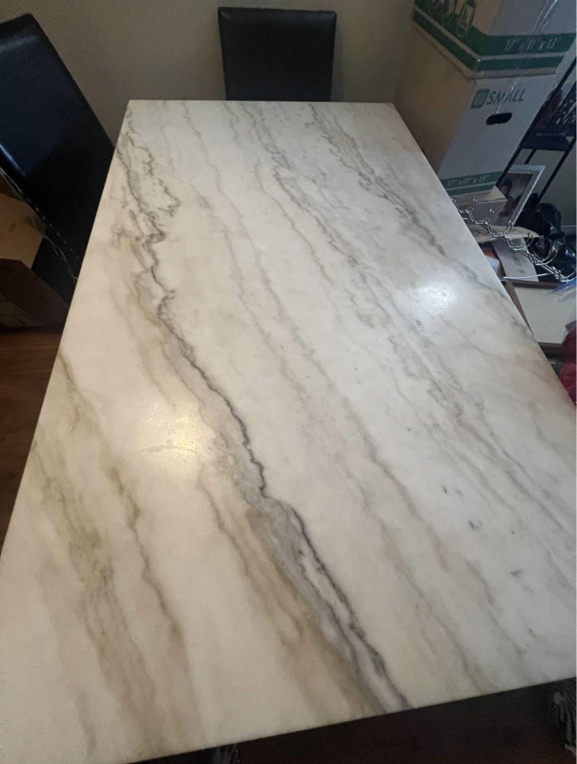 Marble dining table set, four leather chairs, and leather bench. Table measures 64” L, 38” W, 31” H. Pick up only as I do not have a truck and need gone asap.
