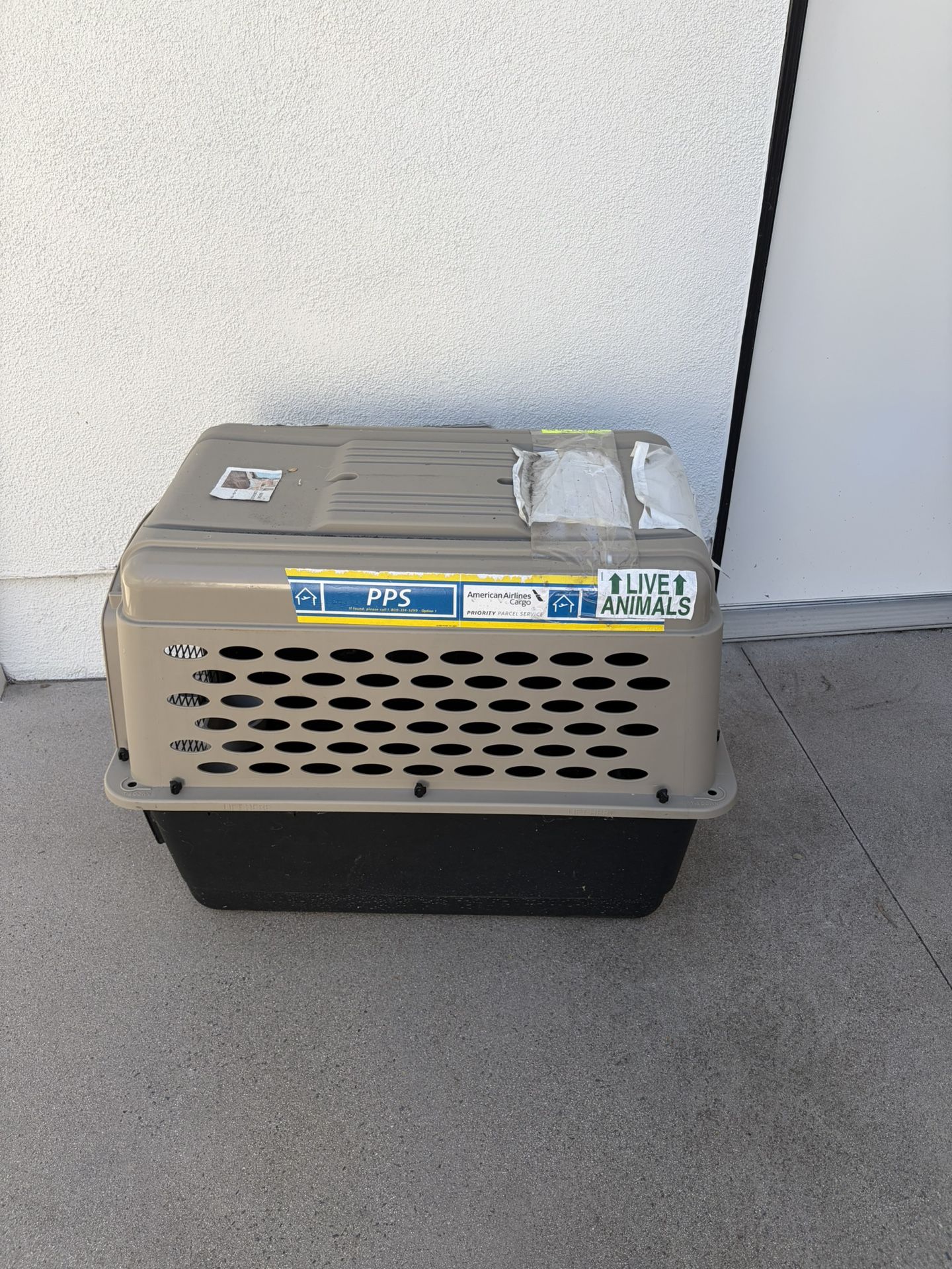 Must go! Make an offer! Petmate Dog Kennel - Portable Dog Carriers & Crates for Medium to large Dogs, Airline-Friendly, Durable Plastic, Pet Carrier For Home and Travel, 34 inches long, 20-inches wide and 28 inches in height. This carrier was used 1x from Illinois to California and is no longer needed & in gray shape. Color- Taupe and Black