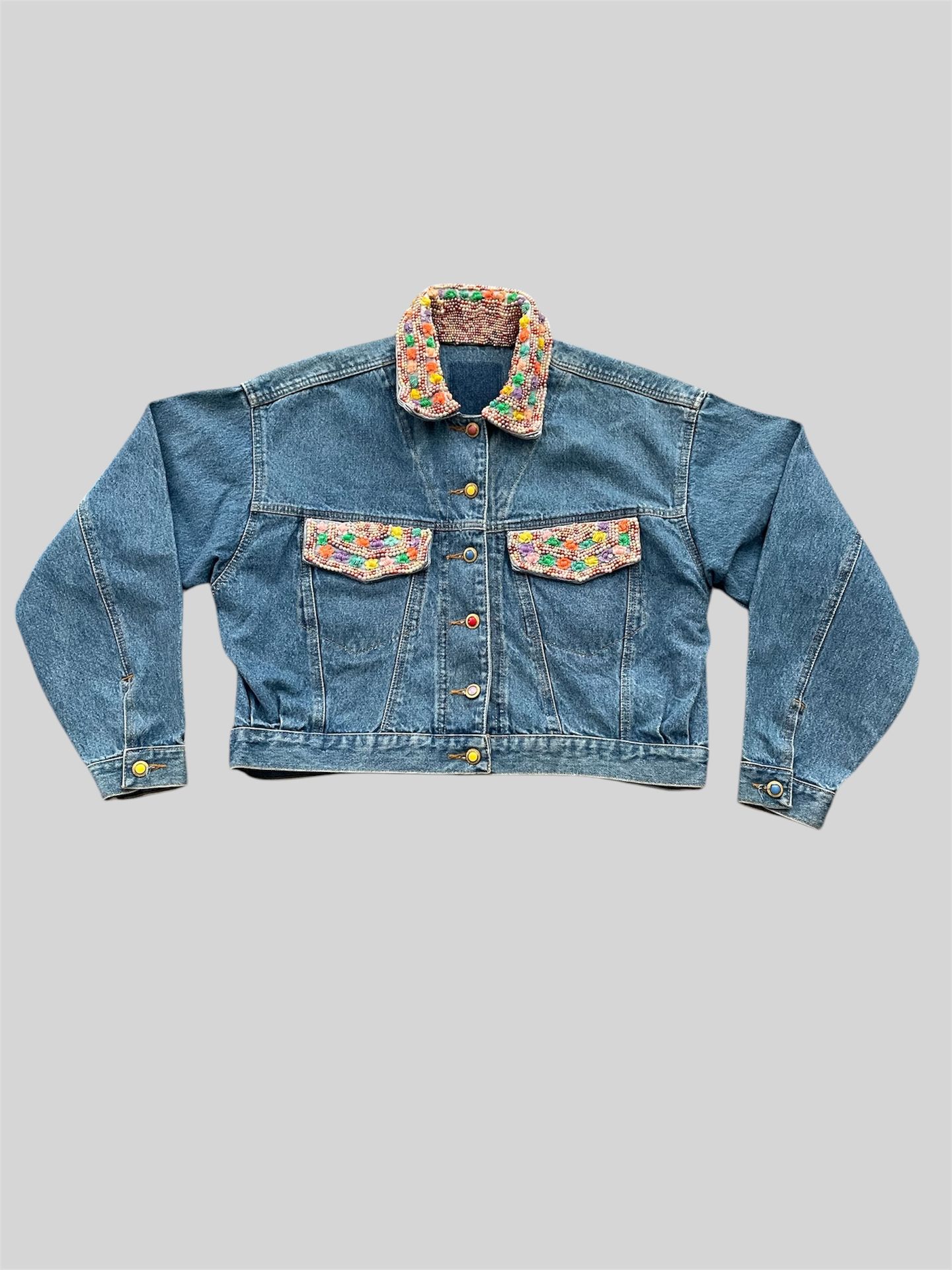 vintage 90’s Jou Jou denim jean jacket jeweled beaded colorful jacket Size Large