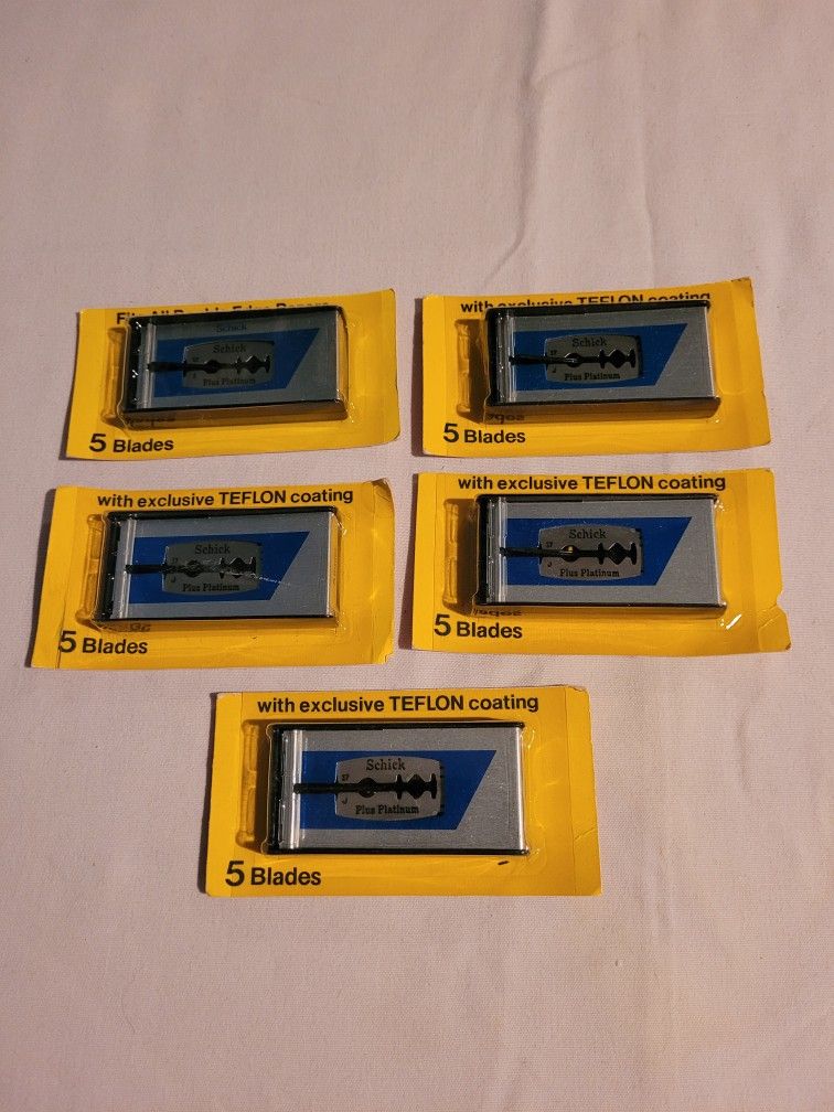 Schick Plus Platinum Razor Blades, double edge, there are 5 packs and 5 blades in each pack. All 5 packs are still sealed see pictures. New Bx51