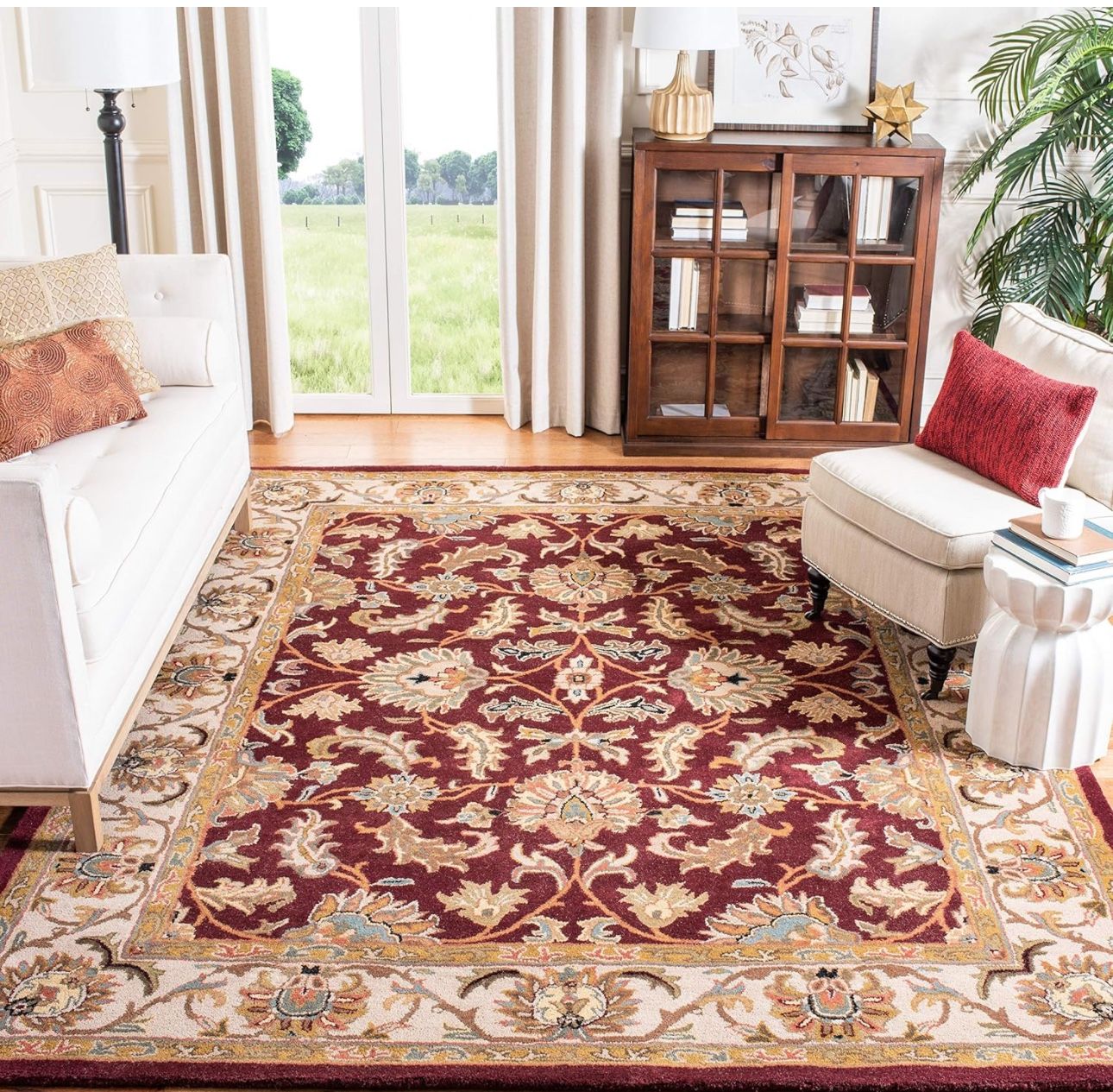 SAFAVIEH Heritage Collection Area Rug - 8' x 10', Red & Ivory, Handmade Traditional Oriental Wool, Ideal for High Traffic Areas in Living Room, Bedroo