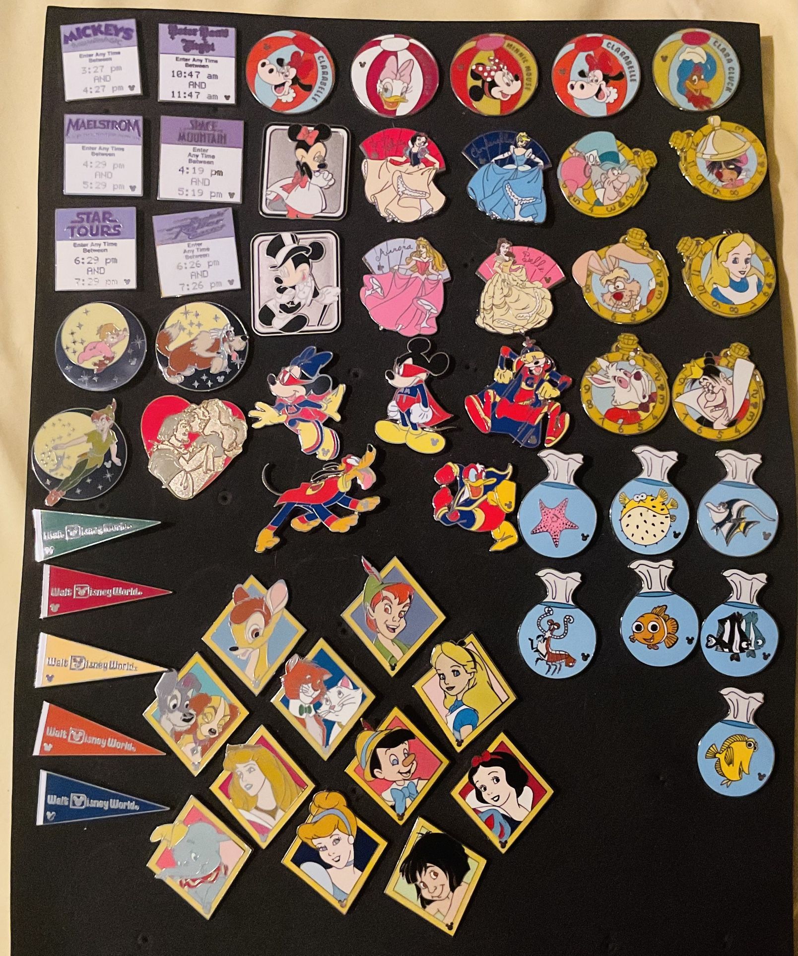 Here are hard to find hidden Mickey pins.. 188 pins, many are from Disneyland. All in great condition.. no returns. making it a must-have for any Disneyana enthusiast looking to add to their collection. Please feel free to ask me any questions.