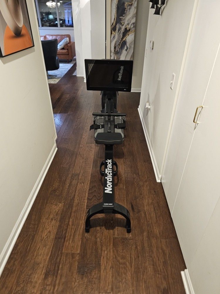Product dimensions 219.71 x 55.88 x 128.02 About this item [Powered by iFIT] – Access over 10,000 workouts and features for a personalized experience. Get coaching by expert iFIT Trainers in workouts that adapt to your fitness level and goals with our SmartAdjust technology (Pro subscription required). [22″ HD Smart Touchscreen] – Pivot your touchscreen to follow along with iFIT Trainers through off-equipment workouts, or adjust the angle for a more comfortable viewing experience (Pro subscription required). [26 Levels of Trainer-Controlled Resistance] – With iFIT, your trainers will automatically adjust your resistance to match global waterways and modify your intensity (Pro subscription required). [Folding SpaceSaver Design] – With our innovative, folding design, the RW900 not only provides a powerful workout, but also the perfect home storage solution complete with front-mounted wheels. [Quick-Adjust Pedals] – Our oversized, pivoting pedals with quick-release, adjustable foot straps will provide confidence and comfort through your fast-paced, Like new