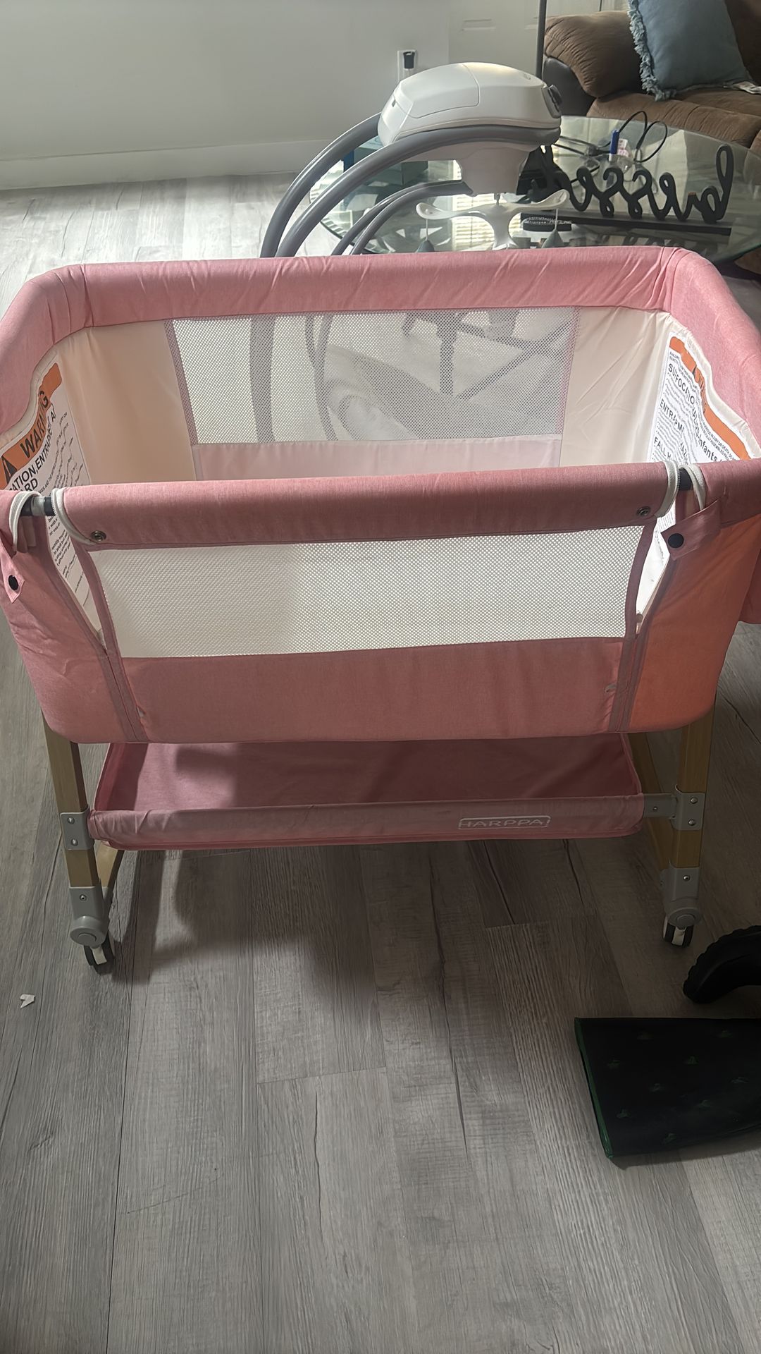Bassinet for infant used approximately 4-5 times. My daughter slept with me and she is now 1yrs old and we have no use for it.