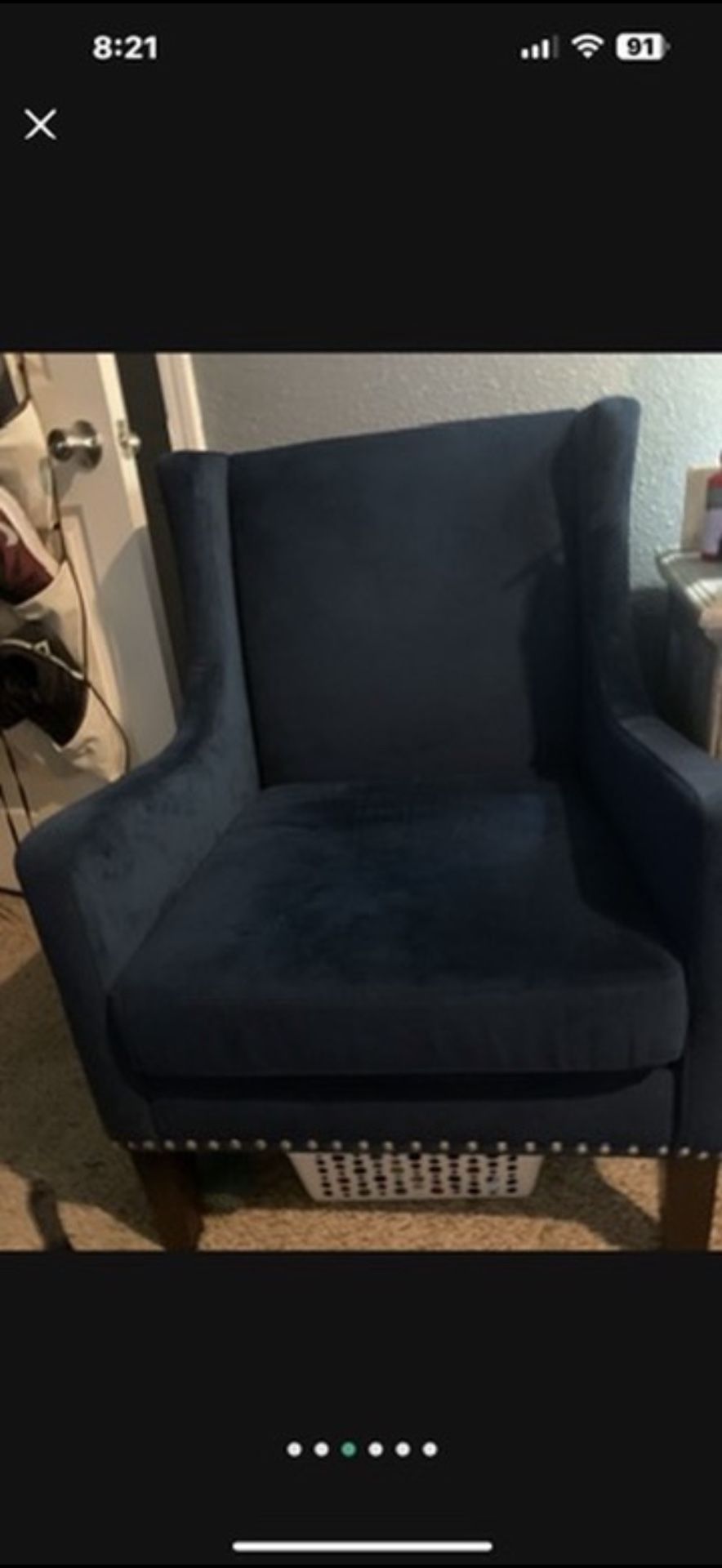 Navy blue wingback accent chair. In good condition. It doesn’t have any holes or tears. Please cash only! No hold! First come first serve! Pick up in Visalia