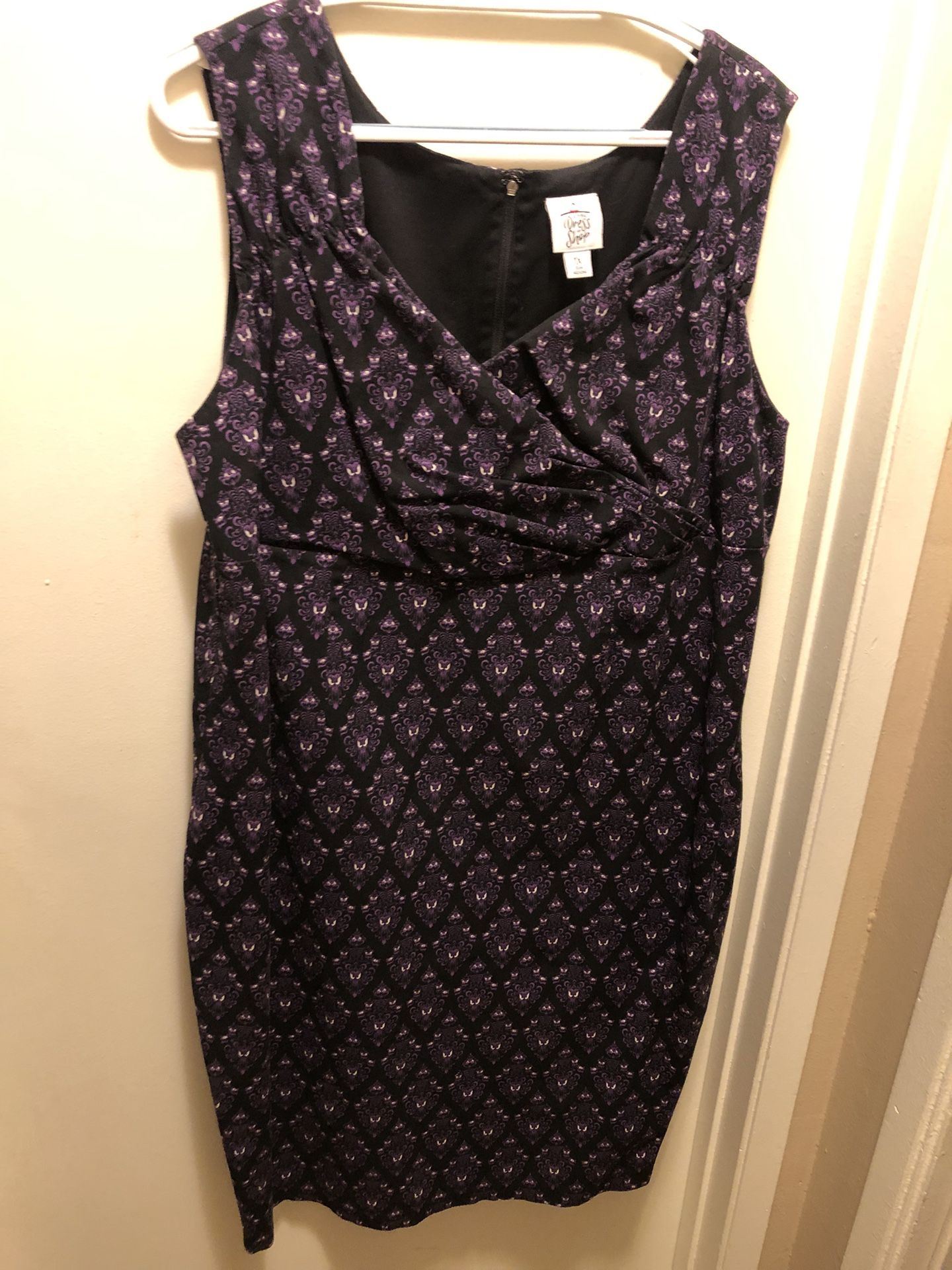 This is a gently used Haunted Mansion Wall paper dress from the Dress Shop @ Disneyland. It has been recently dry cleaned. This comes from a smoke-free & pet free home! It's a size 1X. It zips up from the back as you can see from the pics. It has no stains, rips, tears, etc. The dress is very slimming & hugs the body. Even thou it's a Disney dress, this dress has NO POCKETS. SO PLEASE KEEP THAT IN MIND, IF YOUR EXPECTING THIS TO HAVE POCKETS LIKE THE OTHER DRESS ES! Make an offer if your interested & ask any questions you may have about the dress. Cash only! Local pick up. No shipping.